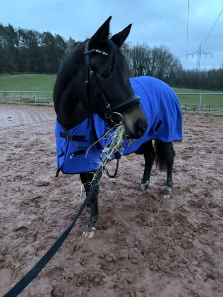 Trakehner Stute – schwarzbraun, menschenbezogen & mit interessanter Abstammung Zum Verkauf steht eine elegante schwarzbraune Trakehner Stute. Sie ist unerschrocken, charakterstark, aufmerksam und dem Menschen sehr zugewandt – eine tolle Partnerin für Freizeit oder weitere Ausbildung. Die Stute stammt aus einer interessanten und begehrten Zuchtlinie, was sie auch für die Zucht spannend macht. Sie kennt bereits Reitergewicht und wurde in der Vergangenheit im Schritt, Trab und Galopp unter dem Reiter geritten, muss allerdings weiter ausgebildet werde. Beim reiten zeigte Sie sich sehr lernwillig und brav. Sie ist sowohl Offenstall als auch Boxenhaltung mit täglichem Weidegang gewohnt und zeigt sich dabei unkompliziert. Wir wünschen uns für sie ein liebevolles zuhause. Verkauf erfolgt ausschließlich in beste Hände. Videos gerne auf Anfrage nach persönlicher Vorstellung.