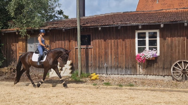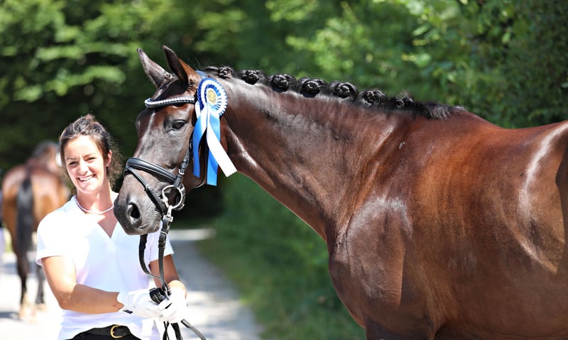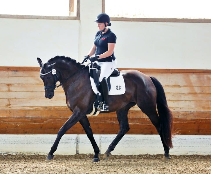 Anabel è una meravigliosa cavalla Trakehner, molto equilibrata, che viene ceduta con grande dispiacere solo a una casa migliore. È stata in mio possesso dalla fine del 2021 e, a causa di varie circostanze, è stata montata con cautela solo a 7 anni. Nel 2024, Anabel ha vinto la sua prova di selezione in Baviera (Tierhaupten) come migliore della giornata. Lo scorso anno è stata inseminata per la prima volta; Anabel ha subito concepito e quest'anno ha dato alla luce un puledro maschio premiato da Hallifay Lyng senza complicazioni. Durante la valutazione del puledro, Anabel è stata registrata decentralmente con un punteggio di 54,5 (raccomandazione del giudice di allevamento Neel Schoof di presentare la cavalla centralmente per ottenere il premio di associazione). Dopo la pausa per il puledro, Anabel è attualmente in fase di riaddestramento. È assolutamente equilibrata e tranquilla nel maneggiarla, ma non è adatta ai principianti! Per motivi personali/familiari, cerco per lei una casa amorevole. Sarà ceduta solo a mani esperte. Per ulteriori domande, sono a disposizione.