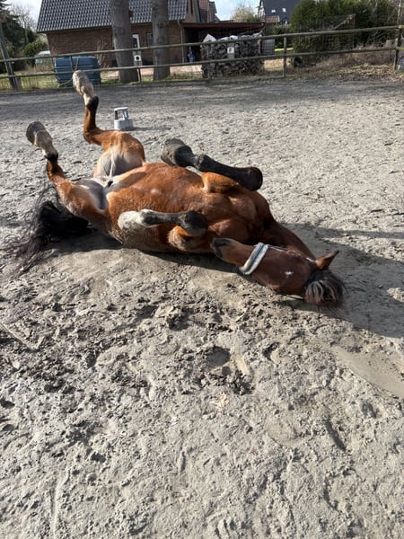 Schweren Herzens habe ich mich entschlossen für Flagranti ein neues Zuhause zu suchen. Leider werde ich ihm einfach nicht mehr gerecht. 💔 Flagranti ist ein beeindruckender Trakehner Wallach und besticht durch seine Größe, exzellente Dressurqualitäten und sein edles Erscheinungsbild heraus. Mit einem Stockmaß von 187 cm ist er ein wahrer Blickfang. 😁 Flagranti ist seit mehreren Jahren im Dressursport eingesetzt und zeigt sich stets gut geritten und zuverlässig im Umgang. Einige Turniere ist Flagranti bis L bei seiner Vorbesitzerin gelaufen. Wir selber waren auf mehreren A-Dressuren unterwegs. Trotz seines Alters ist er hochmotiviert und immer bereit Alles zu geben! Seine Bewegungen sind fließend, taktklar und ausdrucksstark – ideal für Reiter, die Wert auf Qualität und Leistungsbereitschaft legen. Beim Ausreiten ist auf Ihm auch immer Verlass, er ist Geländesicher und geht alleine ins Gelände. Aktuell steht er in einem Offenstall aber kennt Boxenhaltung auch. Er ist gesund, regelmäßig kontrolliert jedoch ist Flagranti Schwerfuttrig und hat aufgrund eines Stallwechsels abgenommen. Nun hat er langsam wieder gut zugenommen Zähne wurden letztes Jahr sogar endoskopisch behandelt und nun kontrolliert - kein Befund.. Er ist ein wirklicher Goldschatz und ist sehr artig im Umgang. Meine kleine Tochter (2J.) kann ihn ohne Probleme putzen, reiten oder führen. Wer sich mit Trakehner auskennt weiß, dass sie sehr sensible Tiere sind. Flagranti ist perfekt für Reiter, die einen zuverlässigen Dressurpartner suchen, der sowohl sportlich als auch charakterlich überzeugt. Bei Interesse freue ich mich auf Ihre Kontaktaufnahme, um weitere Details zu besprechen und einen persönlichen Eindruck zu ermöglichen. Es ist definitiv KEIN Notverkauf! Platz vor Preis!! Ich möchte Flagranti noch eine Chance geben, wo er nochmal zeigen kann was er kann! Die mit ihm viele schöne Dinge erleben und für ihn da sind♥️ Ich gebe Flagranti mit seinen kompletten Zubehör ab. Das ist Alles im Preis mit inbegriffen.