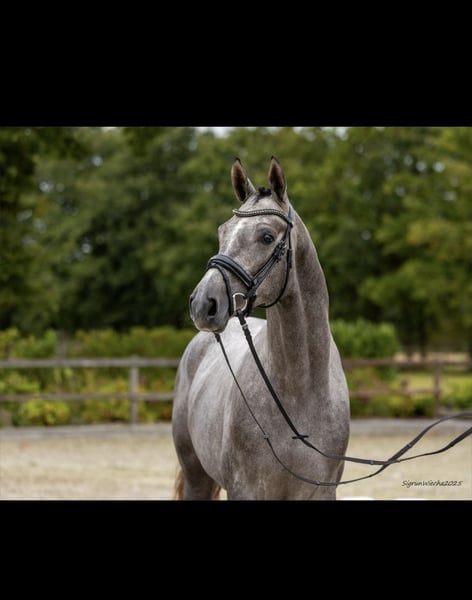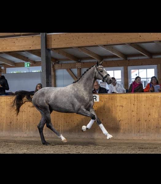 "Manitou" is an expressive, charming gelding by "Kind of Magic" out of a mare by "Connery." He is currently being gently backed at our Panker stud farm and is enjoying his early training in the young horse school. He consistently shows himself to be attentive and eager to learn. The young gentleman is very committed and provides the rider with a lovely riding sensation. He is pleasantly soft to sit and, during his first rounds under saddle, moves evenly in outline. The gelding impresses with his stylish appearance and captivates with a harmonious build. Last year, "Manitou" was presented for pre-selection, where the photos for this ad were also taken. After the pre-selection, he enjoyed his life as a pasture horse and has recently been gently backed again. "Manitou" has good X-ray results. If you're interested, please contact us to get to know "Manitou" here at Panker stud farm.