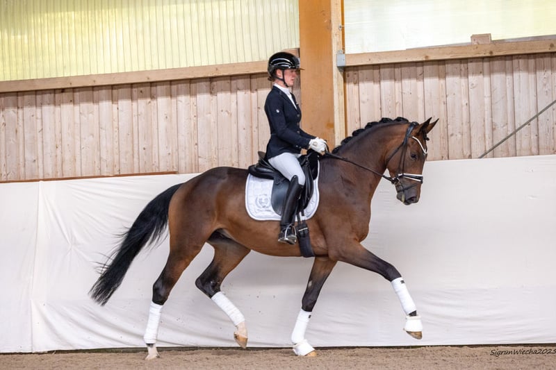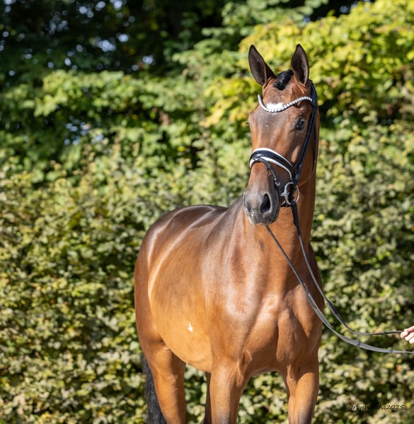 Ein wahrer Gentleman mit besonders vornehmen Manieren, gesittet im Umgang und bei aller Jugendlichkeit abgeklärt und gefestigt bei sämtlichen Anforderungen. Entdeckt auf der Bundesturnier-Fohlenauktion (BuTu ‘22/10 Heydekrug), hat er seitdem nichts von seinen sportlichen Attributen und seiner Dynamik eingebüßt. Die Mutter errang Platzierungen in Dressurpferdeprüfungen Kl. A und vertritt den Stamm der Grand Prix- und S-Dressurhelden Mon Acteur TSF, Aragorn le Grande, Arwen la Fee (alle Lutz Weyland). Weitere Informationen finden Sie unter: https://bid.trakehner.auction/auctions A true gentleman with impeccable manners, he is decent and civilized and despite his youth level-headed and confident in all situations. Discovered at the National Trakehner Show foal auction (BuTu ‘22/10 Heydekrug), he has not lost any of his athletic qualities nor his dynamic since. His dam took home placings in dressage horse classes at A and shares the same maternal family as the Grand Prix and S dressage mounts Mon Acteur TSF, Aragorn le Grande, Arwen la Fee (all of them Lutz Weyland). Further information can be found under: https://bid.trakehner.auction/auctions