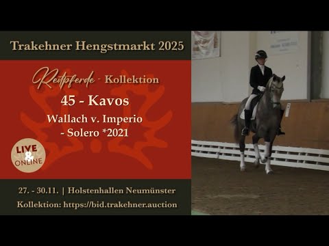 Ein Star dieser Kollektion, denn Kavos wurde mit glänzenden Talenten für eine vom Erfolg verwöhnte Karriere im Großen Viereck beschenkt und vermittelt eine Symbiose von hoher Rittigkeit, vorbildlicher Arbeitseinstellung und einem dynamischen, von Kraft und Takt getragenen Bewegungspotential. Siegreich und hochplatziert in Reitpferdeprüfungen und Dressurpferdeprüfungen Kl. A. Aus einem profilierten Leistungsstamm, dem die Verbindung der Weltklassedressurpferde Imperio und Solero TSF ein sportlich erlesenes Gesicht verleihen. Bruder des S-Dressurpferdes Killarney und eng verwandt mit dem Grand Prix-Star Kaiser Wilhelm TSF. Weitere Informationen finden Sie unter: https://bid.trakehner.auction/auctions Wiry, athletic, and committed describe the attributes of this daughter of advanced level show jumper Tempelhof, and her sport ambitions run from eventing to show jumping. Coming from a dedicated sport horse breeder and a top-class sport horse producer, she was given the right skills during her training under saddle. From a top performance dam line, where the combination of Nations Cup hero Waitaki with successful Grand Prix stallion Axis TSF and advanced level show jumper Couleur-Fürst conveys great sport horse potential. Further information can be found under: https://bid.trakehner.auction/auctions
