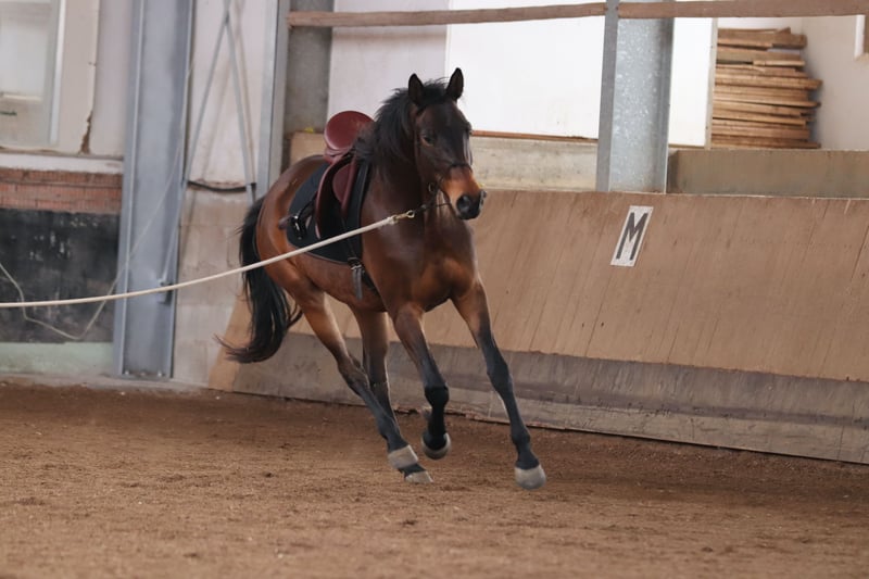 Grafenstart ist ein doppelt-veranlagter 7 jähriger Trakehner-Wallach ( Lossow-Sohn). Er ist im August 2018 geboren. Aktuell lebt er in einer gemischten Herde im Offenstall, wo er sich sehr wohl fühlt. In der Herde zeigt er sich sehr gut verträglich. Er ist seit vier Jahren in meinem Besitz. Ich habe ihn schonend angeritten (erst mit 4,5 Jahren!) und ihm viel Zeit gegeben. Grafenstart ist ein mutiger Jungwallach, der sehr klar im Kopf ist. Im täglichen Umgang ist er absolut brav und respektvoll, ein richtiger Goldschatz. Auf dem Hof ist er stets gelassen unterwegs. Beim Tierarzt und Hufbearbeiter ist er entspannt und kooperativ. Er läuft barhuf und hat sehr stabile Hufe. Unangebunden stehen bleiben, Traktoren, Hunde, Kinder oder Unwetter, einparken an der Aufstiegshilfe, alles kein Problem für ihn. Grafenstart steigt mühelos in den Anhänger, auch weite Fahrten meistert er entspannt. Er war mit mir an vielen Kursen dabei, in fremden Umgebungen verhält er sich wie ein Profi. Wer einen mutigen, selbstbewussten Trakehner mit dem typischen Köpfchen sucht, ist bei ihm richtig. Er kennt Bodenarbeit, Handarbeit und Freiarbeit. Er wurde sehr vielfältig vom Boden aus gearbeitet und ist top erzogen. Aus privaten Gründen ( Ich hatte 2024 einen Unfall, danach Schwangerschaft, jetzt Baby ) wurde er dressurlich leider noch nicht weiter gefördert. Gerne mehr dazu am Telefon. Er ist absolut unverbraucht. Grafenstart ist eher der gemütliche Typ ( was ihn perfekt für viele Ausflüge, als Familienpferd und Allrounder macht). Wenn man ihn mit Ruhe und Geduld, sowie dem nötigen Selbstvertrauen motiviert, arbeitet er zuverlässig mit und zeigt sein volles Potenzial. Wenn man selbst unsicher ist, wird er introvertiert und verliert seine Dynamik. Er hat keinerlei Unarten wie steigen, buckeln, durchgehen, beißen oder treten. Eine AKU wurde in 2021 gemacht und war einwandfrei, kann auf Wunsch wiederholt werden. Die Röntgenbilder liegen vor und können gerne zugesandt werden. Grafenstart wurde regelmäßig der Osteopathin und dem Zahnarzt vorgestellt. Er ist kerngesund. Ein negativer PSSM1 und Mim2 Test liegen vor. Ich habe ihn roh direkt von der Züchterin gekauft, wo er im Herdenverband aufwachsen durfte. Robusthaltung ist seine gewohnte Haltungsform, mit welcher er auch ausgezeichnet zurecht kommt. Er wurde von mir eingeritten ( ich bin selbst Horsemanship Trainerin) und läuft entspannt in allen drei Gangarten auf dem Platz und in der Halle, das auch auf unbekannten Höfen, am langen und aufgenommen Zügel. Er zeichnet sich durch drei tolle GGA aus, die weiter gefördert werden wollen. Aktuell steht er leider nicht im Training, er muss also sicherlich auftrainiert werden und das ein oder andere Kilo verlieren. Leider fehlen mir die Kapazitäten ihm seinen zukünftigen Besitzer*in in seiner vollen Pracht zu präsentieren. Wäre es mir möglich, würde ich ihn vermutlich auch nicht verkaufen ;-) Aber auch jetzt verzeiht er mir die Stehtage mühelos. Er steht nun in den Startlöchern für seine sportliche Aufgabe. Im Gelände läuft er in der Gruppe und als Handpferd, was er souverän meistert. Er ist absolut straßenverkehrssicher. Grafenstart wünscht sich einen Menschen mit Erfahrung und einer liebevollen und gleichzeitig konsequenten Führung und eine sportlichen Aufgabe, für die er nun bereit ist. Er ist wirklich ausgesprochen menschenbezogen. Geduldig wartet er am Tor auf seinen Menschen. Er hat noch nie Ausbinder gesehen. Er wurde mit Knotenhalfter oder Schenkeltrense geritten. Sein Stockmaß beträgt 168m. Er wird nur in beste und wertschätzende Hände abgegeben. Grafenstart sucht den Menschen zum DURCHSTARTEN. Auf Wunsch können ein neuer Amerigo Dressursattel in braun und passende Hufschuhe zusätzlich erworben werden. Weitere Fotos und Videos, sowie die Röntgenbilder sehr gerne auf Anfrage.