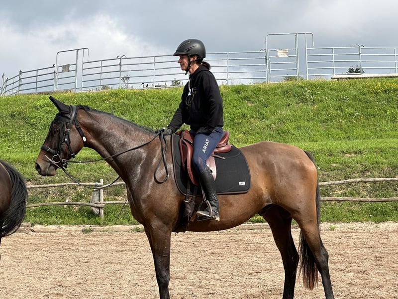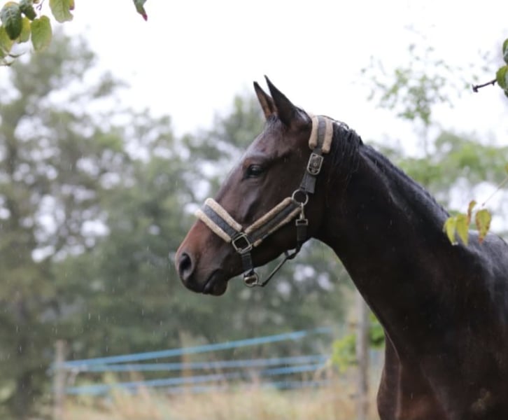 Grafenstart is a double-talented 7-year-old Trakehner gelding (son of Lossow). He was born in August 2018. Currently, he lives in a mixed herd in a paddock, where he feels very comfortable. In the herd, he shows excellent compatibility. He has been in my possession for four years. I have gently started him under saddle and given him plenty of time. Grafenstart is a brave young gelding who is very clear-headed. In daily handling, he is absolutely well-behaved and respectful, a true gem. Around the stable, he is always calm. At the veterinarian and farrier, he is relaxed and cooperative. He is barefoot and has very stable hooves. Standing tied, tractors, dogs, children, or bad weather are no problem for him. Grafenstart loads effortlessly into the trailer, and he manages long trips with ease. He has accompanied me to many clinics, and in unfamiliar environments, he behaves like a professional. Those looking for a brave, confident Trakehner with a typical character will find the right match in him. He is familiar with groundwork, lunging, and free work. Due to personal reasons (I had an accident in 2024, followed by pregnancy, and now a baby), he has unfortunately not been further trained in dressage. More details can be discussed over the phone. He is absolutely untouched. An X-ray examination was conducted in 2021 and was flawless; it can be repeated upon request. Grafenstart has been regularly presented to the osteopath and the dentist. He is in excellent health. A negative PSSM1 and MIM2 test are available. I purchased him raw directly from the breeder, where he was allowed to grow up in a herd environment. Robust housing is his accustomed form of keeping, which he manages excellently. He has been started under saddle by me and moves relaxed in all three gaits in the arena and hall, even at unfamiliar stables. He is characterized by three wonderful gaits that want to be further developed. He is now ready to take on his sporting tasks. In the field, he walks in a group and as a lead horse, which he masters confidently. Grafenstart desires a person with experience and a loving yet consistent leadership, as well as a sporting task for which he is now ready. He is truly very people-oriented. He patiently waits at the gate for his person. He has never seen side reins. He has been ridden with a halter or a leg aid. His height is 168 cm. He will only be placed in the best and most appreciative hands. Grafenstart is looking for a person to TAKE OFF with. Upon request, a new Amerigo dressage and jumping saddle, both in brown, and matching hoof boots can also be purchased. Further photos and videos are available upon request.