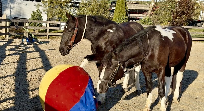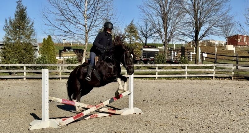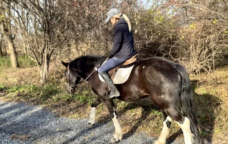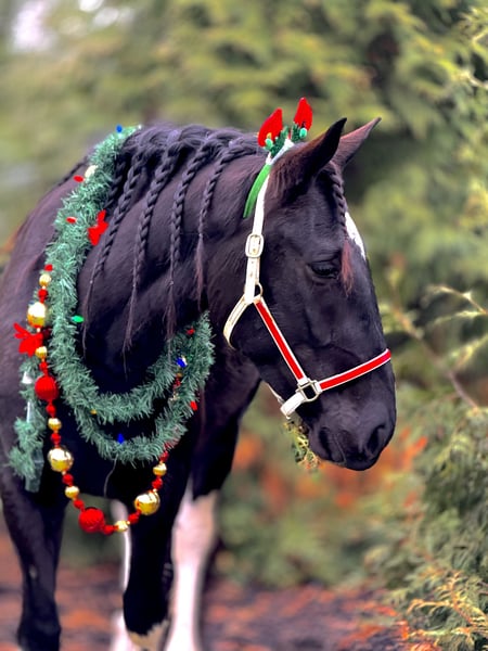 🎄𝐓𝐇𝐄 𝑯𝒐𝒍𝒊𝒅𝒂𝒚 𝐂𝐋𝐀𝐒𝐒𝐈𝐂🎄 Happening now thru MONDAY | DECEMBER 15th - Available EXCLUSIVELY on HorseBid's website! For more details and to register visit: www.Horsebid.com CONSIGNOR CONTACT: CM Farms 717-875-2061 LOCATION: Gap, PA BREED: Gypsy Vanner/Spotted Draft X REGISTERED: No REGISTERED NAME: Candy COLOR: B/W HEIGHT: 15-15.1 AGE: 3 GENDER: Mare How cute is this girl! Meet ✨Candy!✨ (Sibling to Hershey)☺️ This pretty mare is a 3-year-old, 15–15.1hh Gypsy Vanner/Spotted Draft X. This pair is some of the nicest-looking 3-year-olds we’ve come across—already so nicely filled out and round! Candy was simply born quiet with a good brain. She’s been a pleasure to have in the barn; easy, simple, and one we can look forward to working with! She’s broke to ride English, Western, bareback, and drives both single and double! 💕 Under harness, Candy acts like she has 30 years of experience and miles under her belt. In reality, she is just blessed with being so easy, quiet, and intelligent. She could really pass for a pro! She stands to hitch and works well in a team or alone. She’s steady and unflappable, responding with only a light rein and voice cues. She and her brother, Hershey, just make the cutest pair! We’d love to see them go together as they work so well. A good matched team like them is hard to find, however, we are being realistic and offering them separately. Hitched up alone, Candy keeps her steady, unwavering demeanor and always looks to please. On the trail, Candy is happy to be out—always with ears forward and a curiosity about her. She’ll pack anyone on the trail and tends to mosey along in the back with her slow, quiet demeanor. She will lead without hesitation if she’s put in the front, and she’s not one to mind if another horse rides too close or gets in her space. She is very non-marish toward other horses and gets along with everyone both under saddle and in the pasture. She’s a good trail blazer with a careful step and a willing attitude. She’d make a great husband horse! She’ll go through the woods, through the open fields, or really anywhere you point her. She’s seen bikers, hikers, dogs, traffic, and wildlife on the trail, and she takes everything in stride without batting an eye. She’ll go right into the river and crosses the creeks. This girl genuinely enjoys being out and is one of the most unbothered, nonchalant three-year-olds we’ve ever encountered! We think she’d thrive with a trail job and would be so fun to paper chase or fox hunt with. There aren’t many three-year-olds we trust like her. We've even ridden into town over busy highways with semi trucks going by her—and she was a saint! Unflappable and steady. No questions asked. Under saddle in the arena, Candy is straightforward while learning the basics. She’s a complete push ride—one you can have all the leg on, and even use a crop or spur if needed. She wants to be slow and steady, however, she will walk, trot, and canter both directions. She picks up both leads easily! Candy is naturally a plug, but will get up and go with some encouragement. She has easy transitions and good brakes. This girl stands to mount, walks and trots over poles, and has even popped over a cross-rail with the cutest knees! We have no doubt she’ll be athletic and a fun one to jump once she matures more and develops a stronger work ethic. She’s comfortable to sit trot and to canter. Her pretty stockings and cute movement give her all the flash in the arena, and she gets noticed everywhere she goes! This mare is the same horse on property as she is off, and she’d be safe and quiet enough for an AA or JR rider to continue bringing along. 🙌🏼 In the barn, Candy wants to be your best friend and loves attention. She stands to be brushed, tacked up, braided—and she even likes to dress up for the holidays! 😍 She’s well-behaved for the farrier and vet and picks up all four feet easily. She has zero vices in the stall or turnout. She is a young horse who sometimes still needs reminders about ground manners and personal space—but only because she would live in your pocket if she could! She’s been desensitized to just about everything and is never one to give a big reaction or lose her head- (generally she tried to taste test new things instead).😆 She naturally has a curious, calm demeanor. She’s stolen our hearts with her quiet, sweet nature and will make somebody the best of friends! Don’t miss out on a chance to own this fantastic little lady. UTD on shots, farrier, dentist, coggins, and deworming.