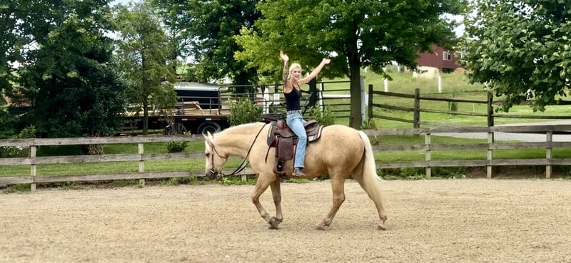 AVAILABLE ON ONLINE HORSE AUCTION AT www DOT MagicHorseAuction DOT com BIDDING OPEN NOW thru TUESDAY | JULY 22nd - BUY IT NOW AVAILABLE! *Final price will be determined on auction site* CONSIGNOR CONTACT INFO: Juli Hubik 717-875-2061 LOCATION: Gap, PA Who doesn’t love a pretty blonde? Meet Charlotte—she’s a 4-year-old, 15.1–15.2hh Percheron/QH cross palomino mare. This girl is built right—she’s got all the curves, she’s sturdy, and she’s the perfect size for a variety of riders. Not only does she have the beauty, but she was blessed with brains too! She rides both English and Western, and she’s so broke to drive you could hitch her up in your sleep. She is the ideal family horse—you can pile multiple kids on her for a leadline ride or send the husband out on a trail! She always takes care of her riders and is totally a lovebug on the ground—especially with the littles. She is a rose among the thorns and truly one of the nicest mares we’ve come across. On the trail, Charlotte has packed a variety of riders for us, including complete beginners! She is careful, slow, and surefooted. She is always happy to go out, with a lovely attitude and a curiosity for adventure. Nothing can get under Charlotte’s skin. We have ridden her all over—through the woods, along the highway, in open fields, and into the river (she lovesss a good swim). She’s as unflappable as they come out on the trail. She will lead but generally ends up in the rear due to her slow, plodding nature. She’s in no rush and enjoys taking in the sights for a relaxing ride. She’s as comfortable as a couch and one you could ride all day long. She is absolutely no spook, buck, rear, or bolt—and no silliness (except maybe grabbing a quick snack when she gets the chance). This girl does love her food. Even if you aren’t a “mare person,” we can guarantee Charlotte will change your mind. She’s lovely and kind in every way. Under harness, Charlotte is experienced and reliable beyond her years. She is able to hitch up solo and drives away from the barn without a worry or care in the world. She’s been on our busy road with all kinds of traffic flying by her (including semi-trucks and loud motorcycles). She is as unflappable as they come and solid in a busy environment. She’ll even stand tied and wait for you to get your groceries and load them in the carriage. She’s been hitched single, double, and to various farm equipment. She’s driven through tunnels, water, farm lanes, construction sites—and the busiest of roads. She’s essentially dummy-proof to drive. She’s light in the reins and responsive to voice signals. We trust her so much under harness, we’ve had our baby on board—she’s never taken a wrong step. Charlotte is also amazing in the ring! This girl is very hard to find a flaw in. She’s like riding a couch—so round and comfortable. She has a solid walk, trot, and canter both ways. Her canter is to die for, and she has the easiest trot to sit! Her favorite gait is probably the walk, and she’s not one that’s ever going to run away with you. She’s happy to mosey around on a loose rein but will happily put in the work and go when asked. Her brakes are impeccable—she will stop on a dime with just a “whoa” or a shift of your seat. She’s packed around the kids and adult beginners like a champ. She’s perfect for leadline rides and genuinely seems to love children with her whole heart. She will lower her head to their height just to get pets and love. She is also able to be athletic and has been coming along lovely over jumps. We’ve been keeping it light with the jumping due to her age, but we couldn’t ask her to do a better job. She’ll pop over cross rails and small verticals in the ring, and she’s even been out cross-country schooling! She is cute and honest in every way. With the right encouragement, she could easily excel in fox hunting or lower-level dressage. She has the proper foundation to go in any direction and is a superstar in every way. On the ground, Charlotte is safe to work around. The kids can run around her, brush her, lead her in and out of the field, and tack her up. She’s one that comes up to you in the pasture begging for attention. She loves people and will put her head in your arms for a hug. She’s gentle taking treats and loves her cookies. She is well-behaved for the vet and farrier, and she loads right into the trailer. If you want a solid young horse to continue growing with—one that you don’t have to worry about and can relax on and with—Charlotte is all that and so much more. She’s quickly become a barn favorite, and we have no doubt she will thrive in any environment! We want the best home for this special girl. Charlotte is UTD on shots farrier dentist and coggins.
