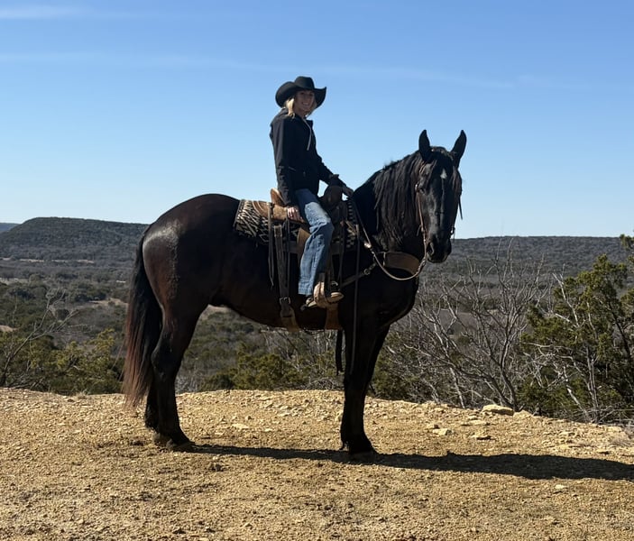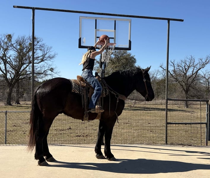 Lijkt op een indrukwekkende, veilige en zachtaardige reus: een 3-jarige zwarte trekpaard x ruin!