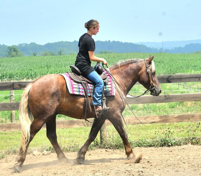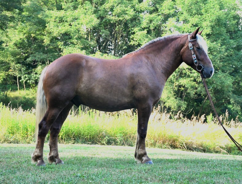 ⚜ The HERITAGE Classic ⚜ Happening now thru MONDAY | AUGUST 11th - Available EXCLUSIVELY on HorseBid's website! For more details and to register visit: www.Horsebid.com CONSIGNOR CONTACT: Rock Valley Stable 330-600-7877 LOCATION: Strasburg, OH BREED: Draft cross REGISTERED: No COLOR: Chocolate HEIGHT: 15.1 AGE: 4 GENDER: Gelding Vance is well trained to ride English or western, walk, trot, canter, and knows his leads. He been ridden in the arena and out on trail. Has been ridden by our 10 year old daughter and is very good with her . He is good for the farrier and vet . Is good to bath and clip and trailer . He is turned out at night and stalled in the daytime, and gets along with other horses. Schooling training level in dressage . Has been trail ridden alone or in a group , is very calm and easy to get along with. Is Up to date on his coggins and Flu Tetanus and Rhino shots. Sells safe and sound. Anyone is welcome to come meet Vance and take him for a ride and spent time with him call or text Dan @ 330 600 7877.