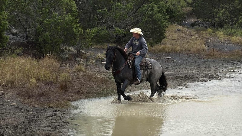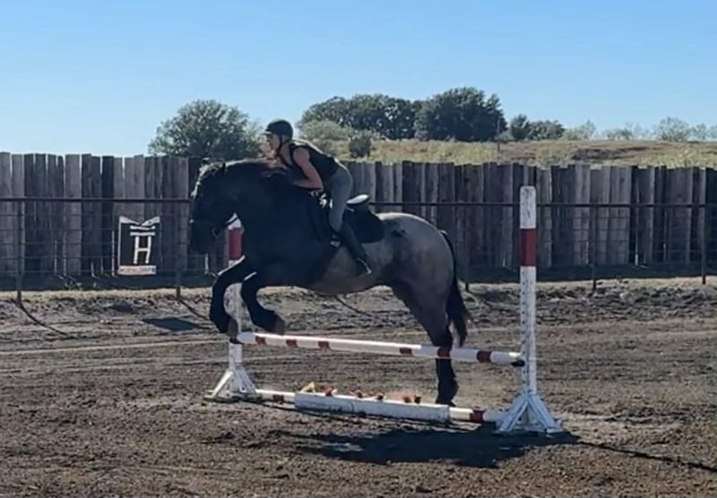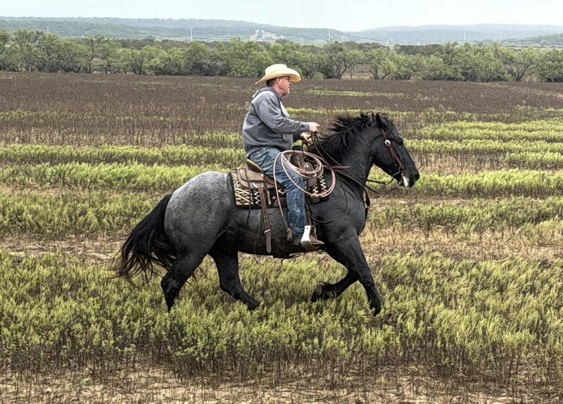 ONLINE AUCTION Place your bids at www.PlatinumEquineAuction.com Starting Bid $3500 Auction ends November 16th, 2025 Need a new saddle? Check out White Rock Saddles on our website or Facebook Vance is a solid made blue roan Percheron/Quarter Horse cross gelding standing 16 hands. He is put together perfectly and heavy boned while still being athletic! Vance is broke to drive single and double. He is broke under English tack as well as Western and has proven gentle in every aspect. We have started Vance lightly over fences to see his potential and he shows a lot of potential. We have hauled Vance to the ranch and on several trail rides and he has proven to be solid, quiet and easy going. He is sure footed and will go anywhere asked of him. He will lead or follow the group and is happy to go off on his own. Vance is traffic safe and has been ridden and drove up and down the highway and back roads. In the arena Vance has 3 solid gaits and easy transitions both up and down. He is well started in a bridle and will also ride in a snaffle bit. We will drag anything and has been exposed to all the scary things which he handled very well. He will stand quietly for mounting and dismounting. Vance hauls well, gets along with other horses, stands tied, bathes, etc. He has good ground manners and is good for the farrier. We have seen zero nonsense, buck, bolt, etc from Vance. He is an easy keeper and very sound. FMI call/text Chanel with Holland Horse Company 559-978-6320. We are happy to answer questions and help arrange shipping! Located in Jacksboro, TX. ONLINE AUCTION Place your bids at www.PlatinumEquineAuction.com Starting Bid $3500 Auction ends November 16th, 2025 Need a new saddle? Check out White Rock Saddles on our website or Facebook