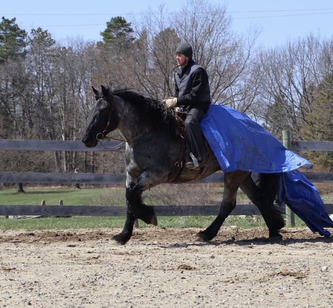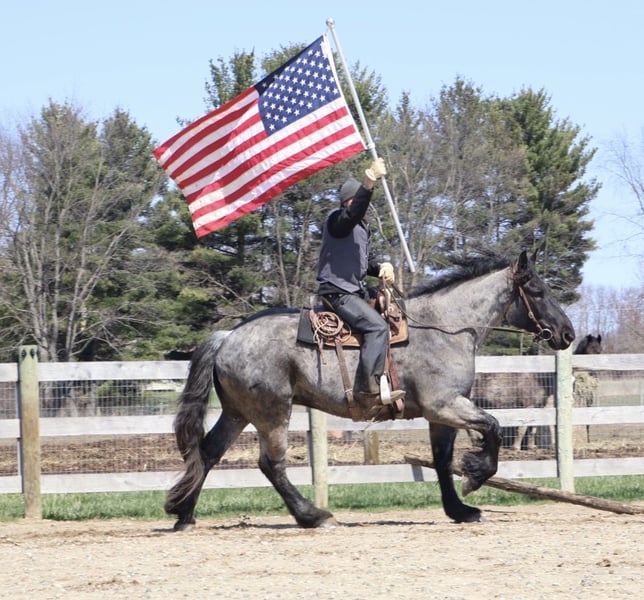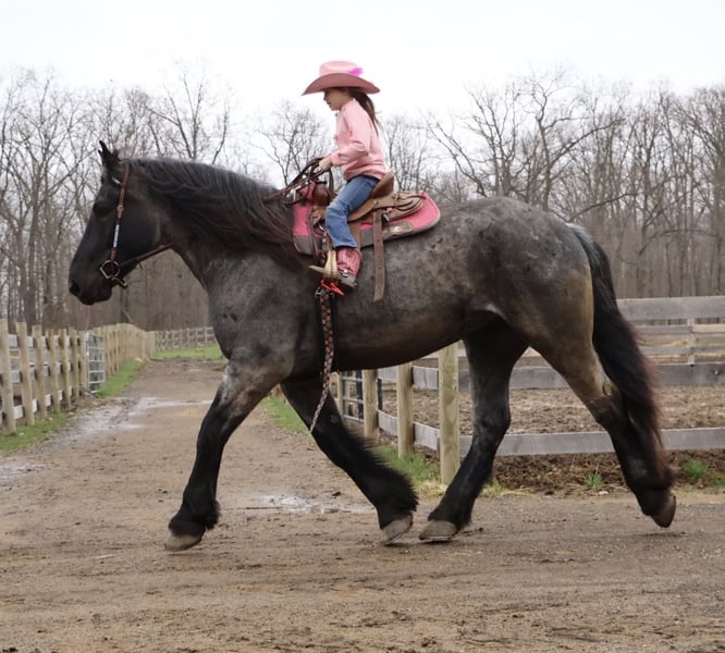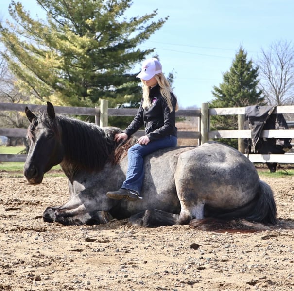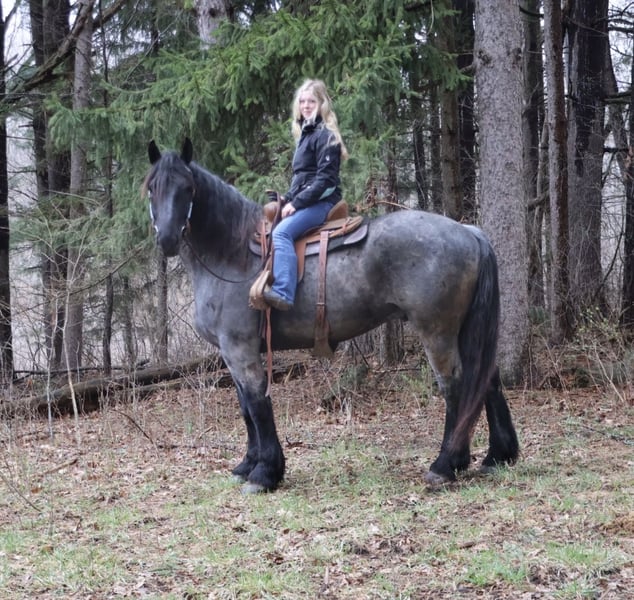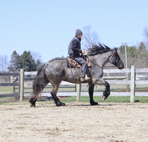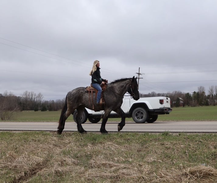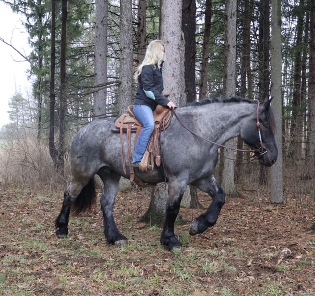 ▪️▫️◾️𝐭𝐡𝐞 𝑴𝒂𝒚 𝐒𝐞𝐥𝐞𝐜𝐭◾️▫️▪️ Happening now thru MONDAY | MAY 4th - Available EXCLUSIVELY on HorseBid's website! For more details and to register visit: www.Horsebid.com CONSIGNOR CONTACT: Blackstone Stables 248-390-6831 LOCATION: Howell, MI BREED: Brabant Quarter Horse X REGISTERED: No REGISTERED NAME: Finn COLOR: Blue Roan HEIGHT: 16.3 AGE: 4 GENDER: Gelding ** SELLING WITH A 2 week guarantee, buy with confidence, inquire for terms*** Meet Mr Dependable! His name is Finn and he is the most trustworthy, confidence boosting horse around! Not only will he turns heads wherever he goes, he has the most charming demeanor. He is a stunning true blue roan. Finn is a 4 year-old, 16.3hh Brabrant Quarter Horse cross gelding. He comes equipped with all the bells and whistles from all the fancy buttons in the arena to all of the liberty training. He will sit and lay down with the most subtle of cues, you will look like a horse whisperer working with him. He knows how to side pass, pivot back up, work on and off seat and leg pressure, pick you up at the mounting block and much more. For a horse of his size, Finn moves with incredible self carriage, grace and fluidity. He is extremely user friendly. He's so in tune with his rider you can pull all tack off and walk, trot, canter, turn and stop with your seat and leg! Finn is the horse who builds you up and makes you want to climb on his back. Whether you are riding Western, English, or bareback, or even driving him you are sure to enjoy every minute. He seamlessly transitions between disciplines with ease. You will be hard pressed to find a more bombproof horse—absolutely safe in any environment. Finn has been ridden on state roads, in the woods, open fields, and has even gone on a shopping trip to our local farm store! His beautiful roan color captures everyone’s attention! One glance into his big brown eyes will steal your heart. Out on the trails, Finn's calm, and steady nature shines. Water crossings, tarps, bridges and other common and uncommon obstacles do not phase him in the slightest. His even keel temperament makes him an ideal horse for beginners who need a forgiving partner, while his experience and smooth gaits make him just as enjoyable for advanced riders. Finn is the rare horse that adapts to his rider’s needs, making him a perfect fit for anyone from novice to seasoned equestrians. And speaking of smoothness, Finn's three gaits are simply unbeatable. His walk, trot, and canter are incredibly fluid and comfortable, making him perfect for all-day rides without leaving you sore. In short, Finn is the full package: strikingly beautiful, strong, athletic, and most importantly, safe. If you are looking for a versatile horse Finn is the perfect partner. Finn is also well broke to drive, he is traffic safe and no stranger to busy roads. Any one who can hold the lines can drive him! He is also a blast to Jump, he holds a great canter to the fences and will jump from any distance. You do not need to be accurate to navigate him around a course, in or out. He was raised on the farm and is ready to meet his forever home! Finn lives in Howell, MI 48855. Please call or text Ellesse Schwartz at 248-390-6831 (tel:248-390-6831) for more information.