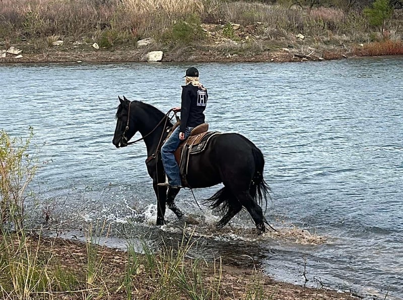 ONLINE AUCTION Place your bids at www.PlatinumEquineAuction.com Starting Bid $3500 Auction ends December 1st, 2024 Need a new saddle? Check out White Rock Saddles on our website or Facebook! Dracula is a 2021 Draft Cross gelding standing 15.2 hands tall. He is the kindest soul with the softest eye and most willing demeanor. Dracula has been well started in both English and Western and is broke to drive as well. Dracula has seen the roads, towns, trails, ranch and arena. We have lightly started him over small jumps and he shows a lot of potential! He is forward moving while still having great downward transitions and a nice stop. He will go anywhere you ask him to and do anything you ask him to do. He is great to take out alone, pastures well with others, and has excellent ground manners. Dracula is a sweet boy who is ready to finish out in whichever direction you choose. He is fun and fancy Western and elegant and flashy English. We have nothing but good things to say about him. Good with his feet. Sound and clean legged. UTD. FMI call/text Chanel at Holland Horse Company 559-978-6320. We are happy to answer questions and help arrange shipping nationwide from Jacksboro, TX! ONLINE AUCTION Place your bids at www.PlatinumEquineAuction.com Starting Bid $3500 Auction ends December 1st, 2024 Need a new saddle? Check out White Rock Saddles on our website or Facebook!