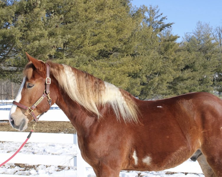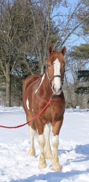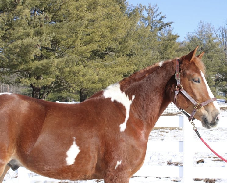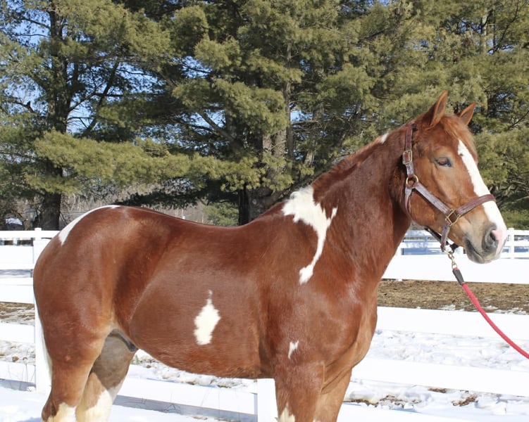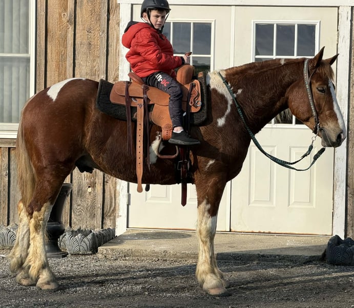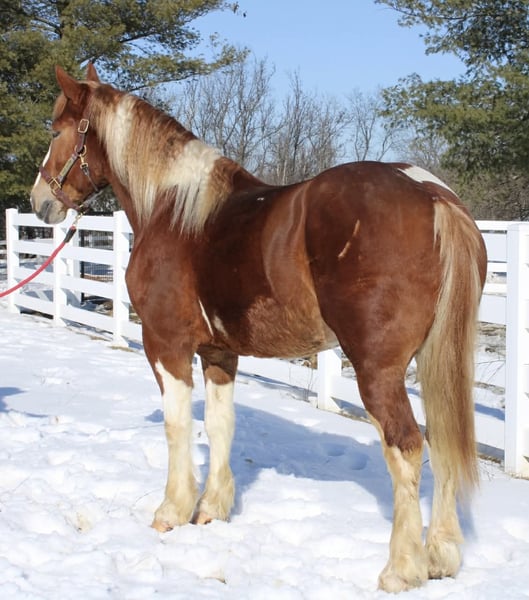 Roman, 5 jaar oud, 1,58 m (15,3 hh), vos en wit kruising draftmerrie