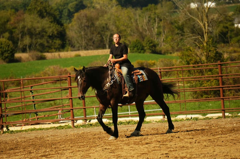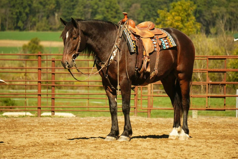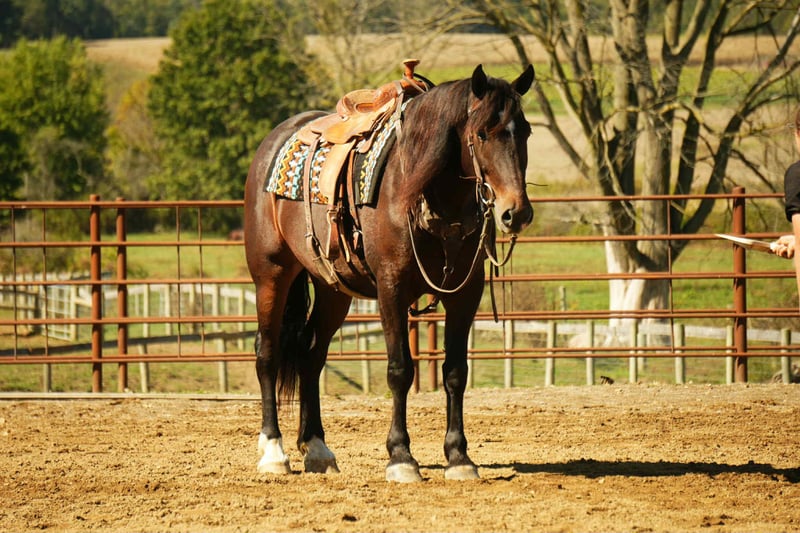 ♦️ 𝐭𝐡𝐞 𝐀𝐌𝐄𝐑𝐈𝐂𝐀𝐍 𝓕𝓪𝓵𝓵 𝓒𝓵𝓪𝓼𝓼𝓲𝓬 ♦️ Happening now thru MONDAY | OCTOBER 20th - Available EXCLUSIVELY on HorseBid's website! For more details and to register visit: www.Horsebid.com CONSIGNOR CONTACT: MW Equine Stables LLC 330-365-0233 LOCATION: Fresno, OH BREED: Draft QH Cross REGISTERED: No COLOR: Bay Roan HEIGHT: 16 AGE: 5 GENDER: Gelding Toledo 5-year-old Draft × Quarter Horse Gelding 16.H 1,200lbs. He’s the total package—good-looking, versatile, and willing—ready to ride, drive, go English or Western… he truly does it all. All around family horse, beginner safe. Toledo has the quiet, easy-going nature of a Draft paired with the athleticism of a Quarter Horse, making him a dream partner for almost any job. He willingly walks, trots, and canters balanced circles. Recently started over jumps, Toledo took to it like he’d been doing it all his life—making him a great candidate for eventing, fox hunting, or simply being your steady, reliable family horse. Out on the trail, Toledo is solid and dependable for riders of all levels. He’s ponied other horses as well , crossed logs, ditches, and creeks without hesitation, and always keeps that same calm, head-level composure. Toledo also drives and has confidently navigated busy roads and heavy traffic. On the ground, he’s as sweet as they come—always at the gate to greet you, soaking up attention, and happy to be around people. He’s been exposed to dogs, cattle, and all the usual farm life without a fuss. He’s sound and clean, no vices, and excellent for shoeing, clipping, loading, and hauling. If you’re looking for a handsome, kind-hearted partner who can truly do it all, Toledo is ready to meet you. Contact Marcus @ 330-365-0233