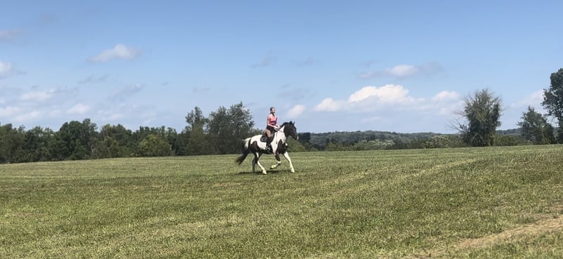 "AVAILABLE ON ONLINE HORSE AUCTION AT www DOT MagicHorseAuction DOT com BIDDING OPEN NOW thru TUESDAY | September 16TH! - BUY IT NOW AVAILABLE! *Final price will be determined on auction site* CONSIGNOR CONTACT INFO: Juli Hubik 717-875-2061 LOCATION: Gap, PA Meet Sánchez, a 4-year-old, 15.1–15.2hh Draft/Paint cross gelding, a.k.a. Mr. Adorable Tank on Four Legs. This compact cutie is built like a brick house and has the personality of your favorite golden retriever. He’s the kind of horse that makes you smile every time you see him — and he knows it. He’s got solid conformation, like “could survive the apocalypse” solid, but without being a skyscraper. He’s the perfect height for those of us who like our horses to be sturdy and substantial — but not so tall that you need a parachute to dismount. He takes up leg beautifully and rides both English and Western, because why limit yourself? In the arena, Sánchez is that magical combination of comfy and uncomplicated. He stands patiently to be mounted — block, ground, whatever — and once you’re on, he’s got a walk-trot-canter that feels like riding a couch made of clouds. His trot is easy to sit (yes, really), and his canter? So smooth you’ll forget about your to-do list and start planning your next trail snack. He’s got a shorter stride, which means tight circles are no problem — and you won’t feel like you’re driving a stretch limo. He’s responsive, but not reactive — just the right mix of “let’s go” and “chill out.” You don’t have to constantly nag him to move, but you can put a leg on without getting launched into space. He stops like a pro with a little seat and a “whoa,” and his brakes work better than most luxury cars. Sánchez is basically the Swiss Army knife of horses. Want to dabble in dressage? Go for it. Try some jumping? Sure. Hit a hunter pace? Absolutely. Or maybe you just want a best buddy for trail riding and barn gossip — he’s your guy. On the trail, he’s a total gem. Front, middle, back, solo — you name it. He’s been through creeks, rivers, woods, and wide-open fields like he’s auditioning for a nature documentary. He’s brave, steady, and probably more reliable than your GPS. He’s even taken beginner riders out for a spin and kept things cool, calm, and collected. He’s popped over tiny logs in the field like a saint, knees up, ears forward, and zero drama. This guy loves going new places — he’s basically the horse version of that friend who always has their bag packed for a weekend trip. Load him up, and he’s ready to go, ears perked and wondering if there will be snacks. Desensitization? Oh, he’s done it all. Fire? Check. Traffic? No problem. Tarps, balls, smoke bombs? Bring it on. While he’s not a total deadhead (he does have a brain), he’s not spooky — more curious than anything. If something startles him, he does a little blink, shrugs it off, and keeps on trucking. In the barn, Sánchez is a gentleman. He minds his manners, respects your space, and plays nicely with the other horses. He stands like a champ for grooming, tacking, and farrier visits. He picks up his feet without fuss and never turns into a pushy brat. At first, he might seem a little stoic — like a mysterious cowboy in a movie — but give him a minute, and suddenly he’s your best friend, rooting through your pockets for peppermints like a seasoned treat detective. We truly love this young guy and believe his future is super bright. That said, he is still young and learning, so he probably isn’t ideal for a complete beginner unless they’re working with a trainer who can help guide him on his path to world domination — er, success. We want a home for him where he’ll be appreciated, loved, and maybe occasionally spoiled with cookies. Because let’s be honest — this horse is kind of amazing.