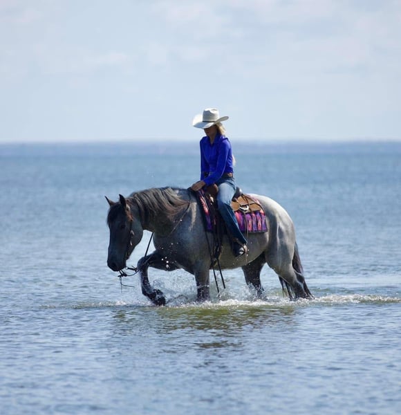 ♦️ 𝐭𝐡𝐞 𝐀𝐌𝐄𝐑𝐈𝐂𝐀𝐍 𝓕𝓪𝓵𝓵 𝓒𝓵𝓪𝓼𝓼𝓲𝓬 ♦️ Happening now thru MONDAY | OCTOBER 20th - Available EXCLUSIVELY on HorseBid's website! For more details and to register visit: www.Horsebid.com CONSIGNOR CONTACT: Flying B Equine,LLC 330-243-5233 LOCATION: Lufkin, TX BREED: Draft Cross - Percheron / Quarter Horse REGISTERED: Yes REGISTERED NAME: FBE Frio N Blue COLOR: Blue Roan HEIGHT: 16.2 AGE: 6 GENDER: Gelding FBE Frio N Blue affectionally known as "Frio" is a 2019 Draft Cross gelding registered with the IDSHR. Standing 16.2HH this boy is BIG, BLUE and BEAUTIFUL! No matter your goals, preferred discipline, or riding atmosphere, Frio has the confidence and athleticism to make your dreams a reality. He has been enjoyed by every level and age of rider and we confidently put a beginner on him! In the arena, he is an elegant mover with a canter that you can sit for hours, and ask for with a simple smooch. His smooth transitions, lead departures and willingness to work strongly support why I believe he would make a great dressage or western dressage prospect. He will pivot on his haunches, stops with ease, and will back up for days. He has been ridden extensively in the arena both under English and Western tack and has also been to a few schooling shows. You can swing a rope, throw balls at him, ride next to machinery or even move cattle on this guy. Frio is the definition of versatile. I’ve personally enjoyed many miles on the back of Frio through the National Forest, where we’ve encountered cyclist, dirt bikes and various wildlife. No matter the obstacle or terrain, Frio will go anywhere you point him without hesitation. He crosses all types of water, bridges, logs, and brush! He is surefooted and his main priority is the safety of his rider. He will stand tied for days to be loved on, groomed, and tacked. He is a complete gentleman for the farrier and the vet. He does not require any maintenance, stocks for shoeing or special feed. He is an easy boy to own, ride, enjoy and fall in love with. He has absolutely no vices! He is UTD on everything, and has a recent PPE on file. He is located with us in Lufkin, Texas and you are welcome to come meet him in person or do your own PPE. We can also help arrange shipping anywhere! Call Bailey @ (330)-243-5233 for more information.