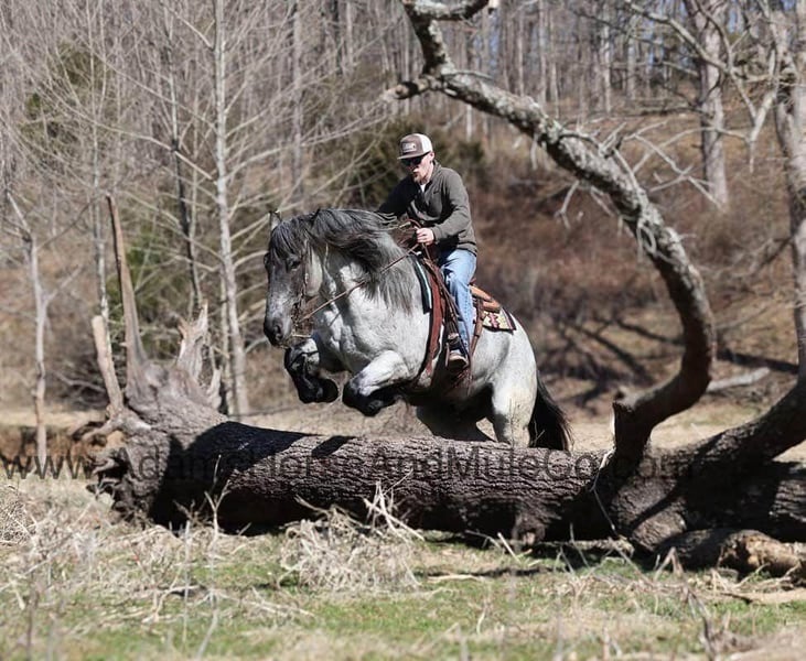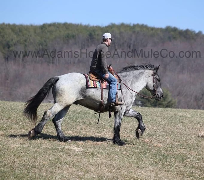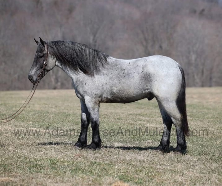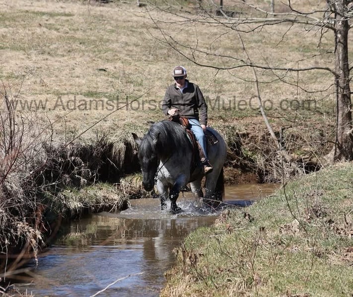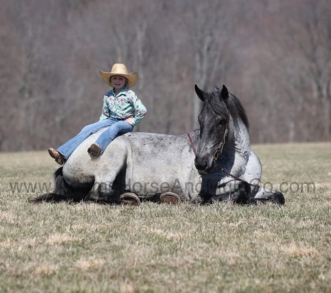 Go to visit our website for more pics and a video. AHAMC has been in the horse business and sold horses over the internet since 2005. We have a long track record of success with hundreds of happy customers. We work hard to match riders with the correct horses and specialize in beginner safe, family friendly horses that have been used and checked out by our family! We can set up transportation anywhere in the US and look forward to working with you.Prince is as cool as any horse that you will see! He is a true blue roan draftcross that stands 16.2hh that will weigh around 1400lbs and he is a 5 years old. Prince is certainly an attractive fellow but there is a lot more to him than what meets the eye! Prince is everyone’s best friend as he loves attention and is very calm natured. Prince is out of the same breeding program as several other top draftcross geldings that we have had over the last 5 years and every one of them has the right mind with the calm nature that makes them great family horses. We have got Prince started on learning some tricks such as to lay down and set. Prince has been ridden by every member of our family all the way down to our 6 year old daughter. He has been ridden down the highways and he is traffic safe as well. Prince is great on trails and he will cross creeks, ditches, logs and navigate rough rocky areas. He has a smooth jog, a VERY VERY nice easy to set lope and a good stop! He has been exposed to all kinds of wildlife such as deer or turkey or other animals like cows or dogs and will go anywhere that he is asked too. He has been rode many miles in the mountains of Eastern Kentucky and encountered every obstacle possible on the trail. He will go up or down even the steepest slopes, across deep creeks, over downed trees, and over all types of rough terrain while still being sure footed. Prince is not cinchy, cold backed, does not crib or weave. In addition to riding, Prince has also been worked around the farm as well. Prince is a rare find that anyone is lucky to have!!! Feel free to call Eric 606-308-2461 with any questions. Go to visit our website for more pics and a video. AHAMC has been in the horse business and sold horses over the internet since 2005. We have a long track record of success with hundreds of happy customers. We work hard to match riders with the correct horses and specialize in beginner safe, family friendly horses that have been used and checked out by our family! We can set up transportation anywhere in the US and look forward to working with you.