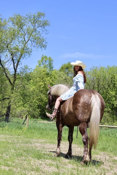 ONLINE AUCTION Place your bids at www.PlatinumEquineAuction.com Starting Bid $3500 Auction ends July 14th, 2024 Need a new saddle? Check out White Rock Saddles on our website or Facebook! If a horse could walk out of a fairy tale into your barn this would be her. She is every bit as magical in person. I’m proud to introduce you to Birdie. This draftcross girl stands 16.3 at 4 years old. She has a beautiful blonde mane and flowing tail which compliment her silver dappled coat. Birdie has excellent conformation. She is well muscled with great bone structure and solid hooves. She is so stunning you could sit and look at her all day! Birdie has the most enthusiastic personality you will find in a horse. She is ALWAYS willing to please. She has a lot of liberty training. Birdie knows how to sit, lay down, and say yes and no. Under-saddle this girl is just about effortless to ride. She has quiet walk, a beautiful trot and the best canter you will sit on. She comes equipped with amazing transitions, both upward and downward, and her brakes are good. She carries herself with a great deal of cadence and class. She has been trail and road ridden, and she will go any where you ask with no silly business. Good luck spooking her! She’s as cool as they come in just about any situation. In addition to her liberty work, Birdie has some very cool buttons. She can canter from a halt, leg yield, side pass, back up, move on and off of seat and leg pressure. Birdie has been playing around with 1st level dressage movements, such as shoulder in, haunches in, extension and collection in all of her gaits. Birdie has been very lightly started over fences. She has been on several hunter paces and has spent many hours out on the trails! This is the most beautiful girl in town. Please call or text Ellesse Schwartz at 248-390-6831 for more information. Birdie lives in Howell, MI 48855. ONLINE AUCTION Place your bids at www.PlatinumEquineAuction.com Starting Bid $3500 Auction ends July 14th, 2024 Need a new saddle? Check out White Rock Saddles on our website or Facebook!