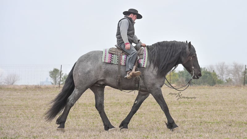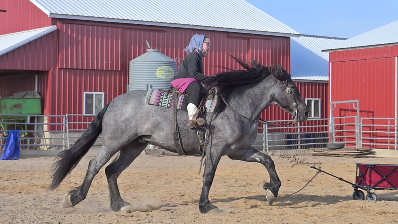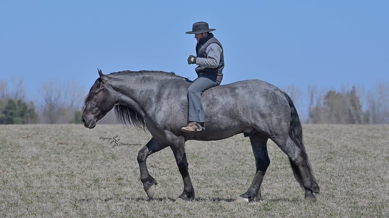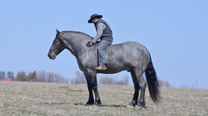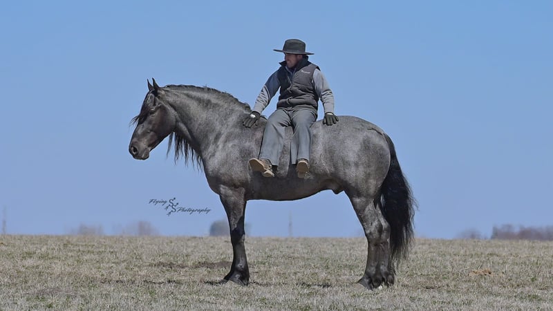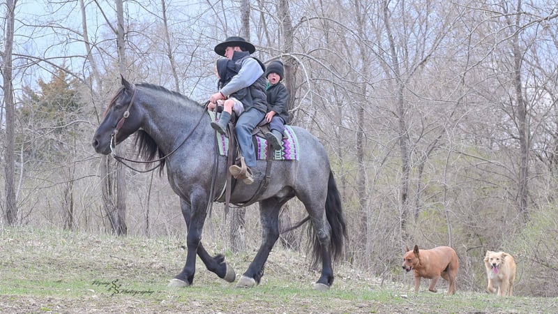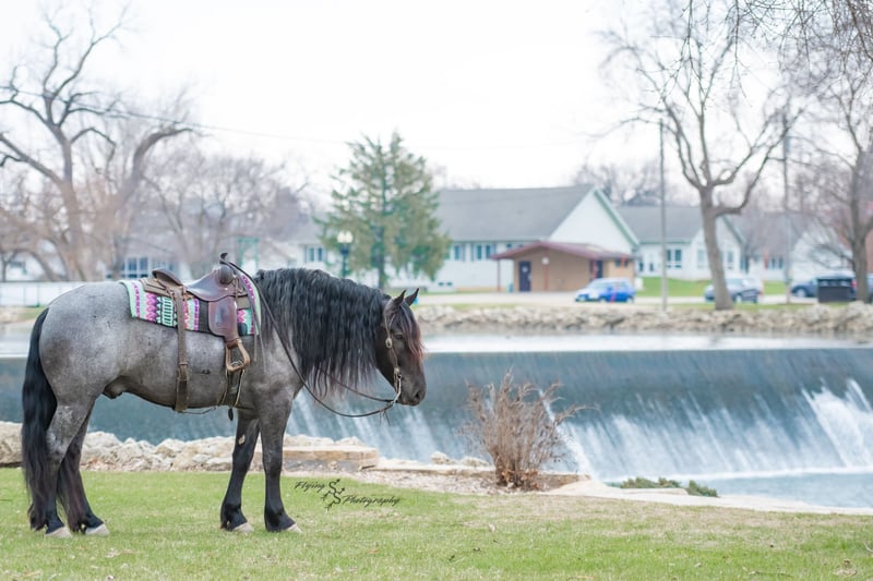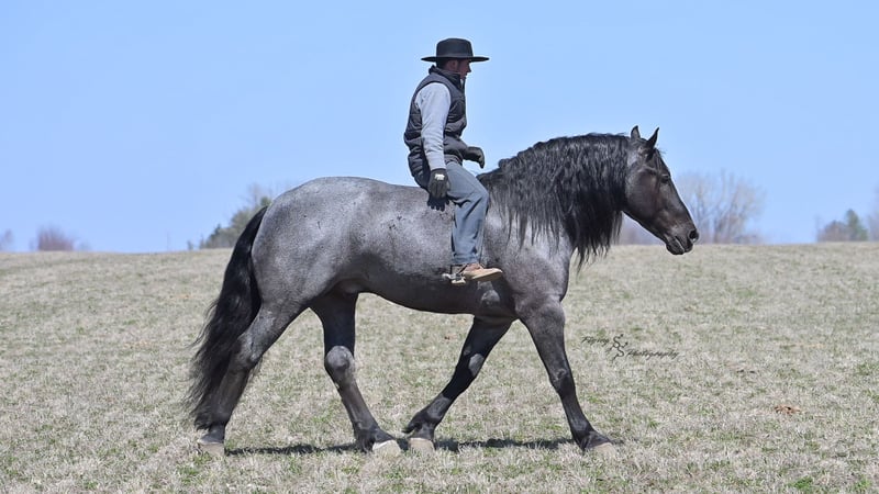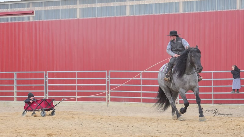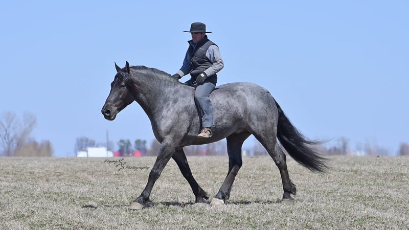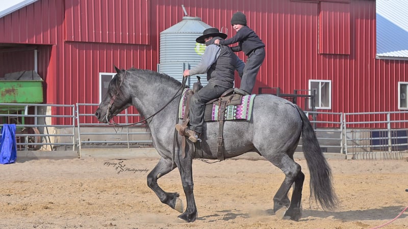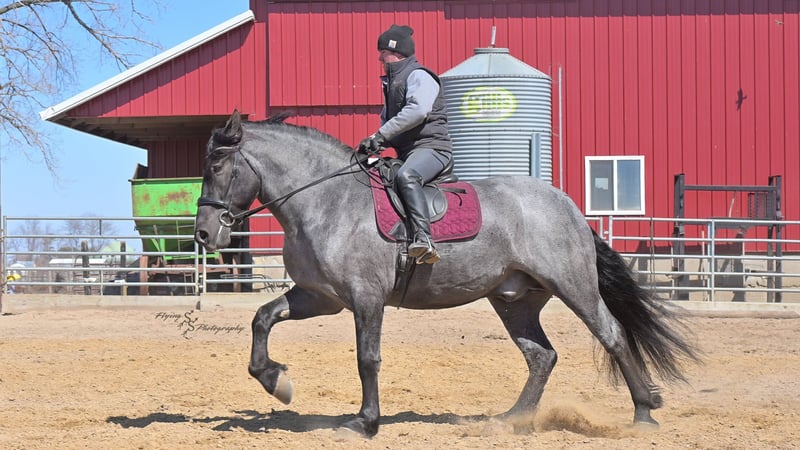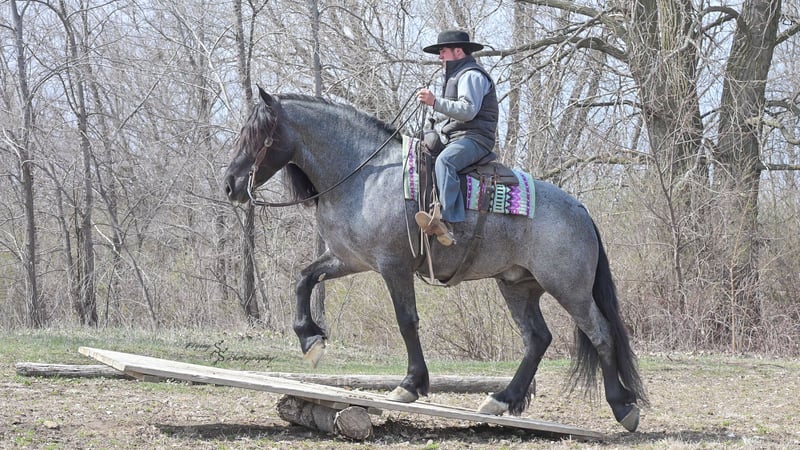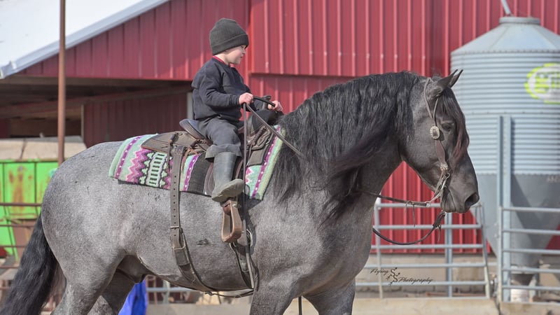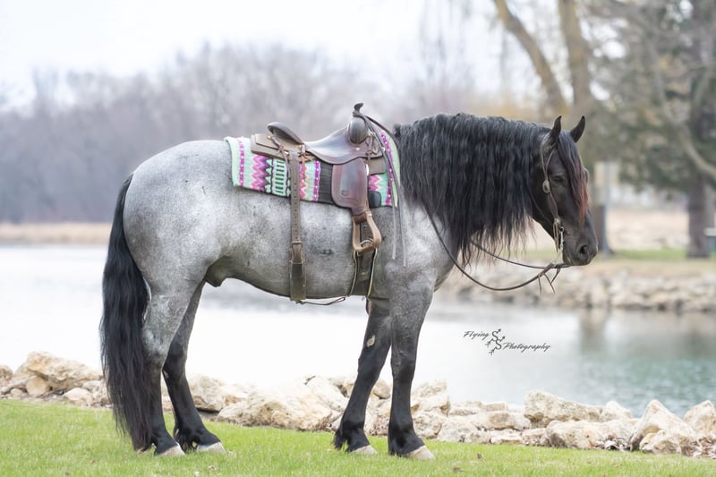 ONLINE AUCTION Place your bids at www.PlatinumEquineAuction.com Starting Bid $3500 Auction ends June 22nd, 2025 Need a new saddle? Check out White Rock Saddles on our website or Facebook! Every once in a blue moon, you come across a horse that stands above all the rest. I’m proud to offer you the once in a lifetime opportunity of owning one of the best horses I’ve ever had the privilege to own and train, Blue Moon. Blue Moon, or Blue as we often call him, is a 6 year old blue roan draft gelding that stands 16.1 hands. You will search many years before you will come across a horse who is as versatile as Blue is. He rides english, western, bareback, bridleless, liberty, and drives. Many say that their horse is a “once in a lifetime” horse, but Blue is the real deal. He is a standout, exemplary individual. Blue is broke enough for any level rider, as well as riders of any age. He has training that advanced riders will love, yet he is honest enough to take care of beginner riders. Blue is the literal go to horse in my barn for every person in my family. Everyone enjoys riding him and loves his disposition. Blue has been rode by all ages of riders, and has performed remarkably well with each individual. We are not afraid to turn the kids loose with him! My 4 year old nephew can confidently lead Blue around with his little sister in the saddle, and can ride Blue by himself without problem. My older nieces (8-12 years old) have loved taking him out on the trails and have gained so much experience in the saddle with him. I have owned Blue for one year, and have genuinely enjoyed the time I have spent training him. Blue is as gentle as he is versatile. He will excel in any direction he is taken. Blue is comfortable with the kids playing and dogs rough housing around him. He is used to all types of noises and machinery, from lawn mowers to semis, Blue has seen it all. He has been used around all types of farm equipment as well. He is happy to be hitched double or single to a carriage, and is a huge help when training other horses to drive. Blue is comfortable with a tarp, crosses logs and bridges, isn’t bothered by the crack of a bull whip, and entertains all of the shenanigans that we get into when playing with the little kids. Even after extended time off, you can bring him out of the stall or pasture, saddle him up and ride off without any problems. Blue stalls well, gets along well with other horses in the pasture, is easy to catch, and is an all around pleasure to spend time with. He is used to small pets, wildlife, as well as other small and large livestock. He will stand to be groomed and tacked with or without cross ties. He also side passes to the fence or mounting block to be mounted. For his size, he is very athletic and carries himself exceptionally. He is great in the arena, on the trail, in town amongst traffic, and anywhere else you could think of taking him. Blue correctly picks up his leads on cue, pivots, would side pass across a football field, has a nice extended trot, and lopes gorgeous circles. Blue is the horse I would trust anyone with, he is absolutely safe. Whether you want to trail ride through the rocky mountains, perform in the english show pen, or hitch him to a carriage in New York City, Blue is fully capable of doing it all. This gelding has a habit of exceeding all of your expectations, and could be considered the 8th Wonder of the World! There are few horses who you can truthfully turn loose with anyone, even fewer who can perform in so many disciplines, excelling in each. It seems like no matter how many great things are said, we barely scrape the surface of describing Blue. The way he looks is only the cherry on top! Blue is the definition of majestic with his eye-catching roan color, big round hip, kind eye, and overall balanced conformation. As if all of that is not enough, he has a mane and tail that Rapunzel would be jealous of. There are an endless amount of things to say about his training, his good nature, and how much I think of him. Blue is great for the veterinarian and farrier. He wears a #5 shoe on the fronts and a #4 shoe on the rears, and has good feet. Blue has a pre-purchase exam on file. If interested potential buyers would like to have radiographs, I am happy to assist in that. He is current on coggins. Blue is eligible to be registered in the IDSHR. If the buyer would like to have him registered, I would be glad to cover that expense and assist in registering him. I want Blue to have an amazing home, where he and his new owner work well together. To insure this, Blue will sell with a 30 day 100% satisfaction guarantee. I am confident that you will love Blue Moon as much as we have the past year. We are located in Fairbank, IA. If you have any questions, or would like to meet Blue prior to the auction ending, please call Edwin Raber 319-283-0616. I could write a book about this amazing gelding, so I urge you to call with any inquiries. I will be happy to talk with you more about my best bud, Blue Moon. ONLINE AUCTION Place your bids at www.PlatinumEquineAuction.com Starting Bid $3500 Auction ends June 22nd, 2025 Need a new saddle? Check out White Rock Saddles on our website or Facebook!