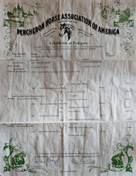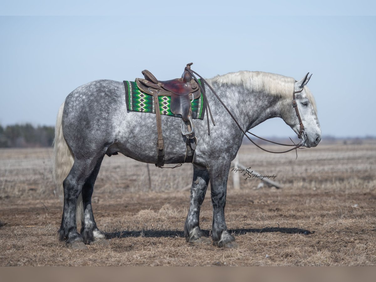 ONLINE AUCTION Place your bids at www.PlatinumEquineAuction.com Starting Bid $3500 Auction ends April 20th, 2025 Need a new saddle? Check out White Rock Saddles on our website or Facebook! Winston is a handsome dapple gray, 6 year old, registered percheron gelding. Our favorite thing about Winston is that he is incredibly safe. The phrase “Safety First” could quite literally be used as his slogan. Winston is a gentle giant, standing a staggering 18.1h tall! He will happily stand at a mounting block, or let you mount from a fence. Do not let Winson’s size intimidate you, he is a joy to handle, even for children! He is a blast to take out on the trails, easily stepping over down timber, crossing water, and going whatever direction you point him in. Winston is perfect for riders of any age and any level of experience. He is very honest on the ground as well as under saddle, admirably taking care of his rider, allowing you to place all of your trust in him. Winston rides western and bareback, bridled and bridleless, and is as comfortable under harness as he is under saddle. He drives absolute best and is incredibly safe, even for beginners or kids. Winston is easy to catch, saddle, bridle, bathe, shoe (easily picks up all 4 feet), and groom. He does great in a stall, as well as in a pasture with other horses. He rides around in an open field just as honest as he does in an arena. He is absolutely traffic safe, and is unphased by anything you will see riding down main street or a highway on a busy evening. Winston will lope in the correct lead, has a nice stop, stands quietly when cracking a bull whip or shooting a pistol, will walk through all of the obstacles, and stays solid even with time off. He is a great fit for the whole family. Winston is even loved by the farm dogs, who he will also allow to ride him! It is impossible to list everything we love about this gentle giant because the list is endless. He is truly a once in a lifetime gelding that we are proud to offer! Winston is current on Coggins, and also has a PPE on file. If you have any questions, or would like to meet him prior to the auction ending, please call Edwin Raber at 319-283-0616. Located in Fairbank, Iowa ONLINE AUCTION Place your bids at www.PlatinumEquineAuction.com Starting Bid $3500 Auction ends April 20th, 2025 Need a new saddle? Check out White Rock Saddles on our website or Facebook!