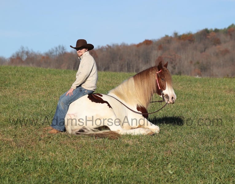 Besuchen Sie unsere Website für mehr Bilder und ein Video. AHAMC ist seit 2005 in der Pferdebranche tätig und verkauft Pferde über das Internet. Wir haben eine lange Erfolgsbilanz mit hunderten von zufriedenen Kunden. Wir arbeiten hart, um Reiter mit den richtigen Pferden zusammenzubringen und spezialisieren uns auf anfängerfreundliche, familienfreundliche Pferde, die von unserer Familie benutzt und überprüft wurden! Valadium Pride alias Val ist ein kräftig gebauter, registrierter Gypsy Horse Wallach mit einer Größe von ca. 15.2h. Er wiegt 1250lbs, ist ein 2018er Modell und hat all das gute Aussehen, das Federkleid und (der beste Teil) die Einstellung, die man sich wünschen kann! Er sieht nicht nur cool aus, er hat auch alle anderen Eigenschaften, die man sich wünschen kann... er ist Mr. Persönlichkeit, so freundlich wie es nur geht, liebt Aufmerksamkeit und ist sehr ruhig. Val stammt aus demselben Zuchtprogramm wie mehrere andere Spitzen-Draftcross-Wallache, die wir in den letzten 4 Jahren hatten, und jeder von ihnen hat den richtigen Verstand und das ruhige Wesen, das sie zu großartigen Familienpferden macht. Val ist seit letztem Jahr bei uns und hat das Natural Horsemanship Training absolviert. Er hat Freiheitsdressur gemacht und kennt auch einige Tricks, wie z.B. sich verbeugen, hinlegen und sich auf den Rücken legen. Val wurde von jedem Mitglied unserer Familie geritten, bis hin zu unserer 6-jährigen Tochter. Er wurde schon auf Autobahnen geritten und ist auch verkehrssicher. Val ist großartig auf Pfaden und er überquert Bäche, Gräben, Baumstämme und navigiert durch raue, felsige Gebiete. Er hat einen geschmeidigen Jog, einen SEHR, SEHR schönen, leicht zu setzenden Lope, einen guten Stop, dreht einen Kreis in beide Richtungen und kehrt mit Leichtigkeit um! Er ist mit allen Arten von Wildtieren wie Rehen, Truthähnen oder anderen Tieren wie Kühen oder Hunden in Berührung gekommen und geht überall hin, wo man ihn hinschickt. Er ist viele Meilen in den Bergen von Ost-Kentucky geritten und hat jedes mögliche Hindernis auf dem Weg überwunden. Er geht selbst die steilsten Hänge hinauf oder hinunter, durchquert tiefe Bäche, überquert umgestürzte Bäume und überwindet alle Arten von unwegsamem Gelände und ist dabei immer noch trittsicher. Val ist nicht zimperlich, hat einen kalten Rücken, kratzt nicht und weicht nicht aus. Neben dem Reiten wurde Val auch schon auf Autobahnen gefahren. Val ist ein super cooles Pferd, das jeder lieben wird!!! Rufen Sie Eric 606-308-2461 an, wenn Sie Fragen haben.