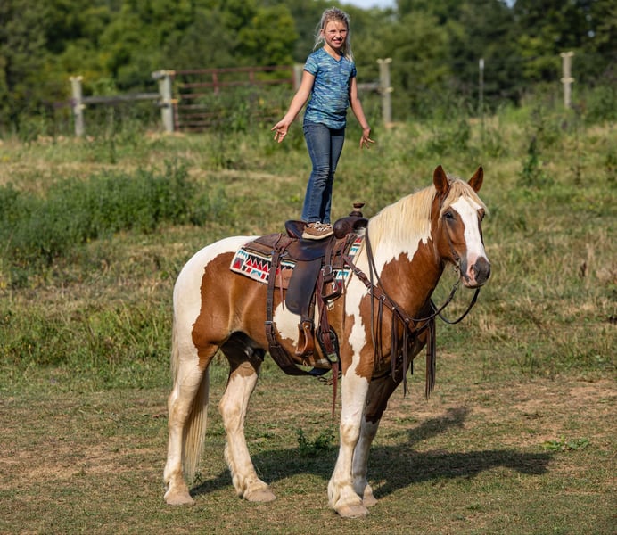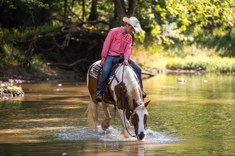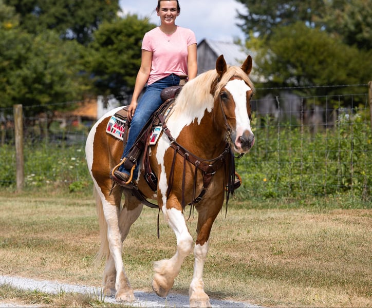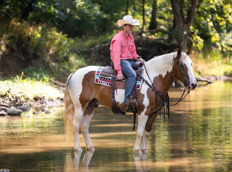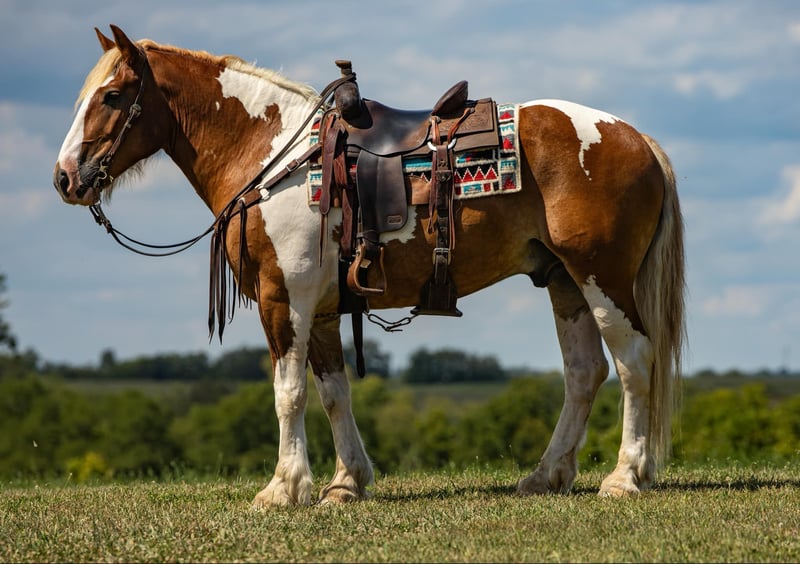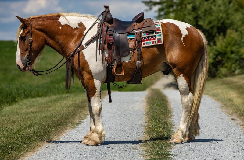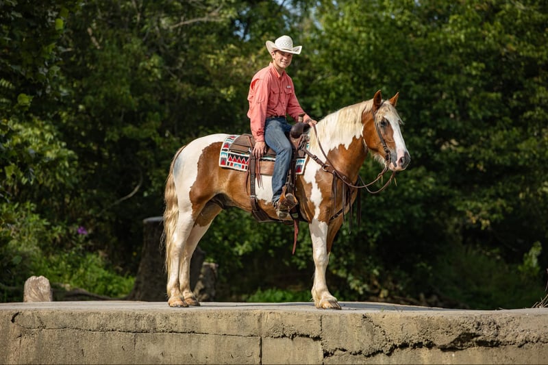 ONLINE AUCTION Place your bids at www.PlatinumEquineAuction.com Starting Bid $3500 Auction ends September 1st, 2024 Need a new saddle? Check out White Rock Saddles on our website or Facebook! Here he is! Everyone meet Big Chief. Big Chief is the guy you’ve been searching for. He is stout, kind, and athletic. Standing at 16.1 hands tall, don’t let his size fool you! He will lope small circles, do figure eights while catching both leads and will one step lope just like any smaller fancy broke horse. He knows all his cues and will stop on a dime. If you’re looking for safety and luxury, Chief is the one for you! This 6 year old spotted draft cross gelding is surefooted and confident on any trail, crossing any obstacle that comes his way. He will ride in the front or the back, he doesn’t care. He has been ridden by kids, novice riders and is loved by all! He is broke to drive and been hooked to numerous farm equipment pieces, to be worked as well. He is broke extremely well in a carriage. He will “whoa” and “go” just on voice command alone. Chief has been giving carriage rides at the local fairgrounds. He is traffic safe. Chief has been used to pony horses around the farm. We have used him to push and check cattle on the farm. He has been ridden in our local parade as well. Chief is about as diverse as one can get. He is truly one in a million. He is a crowd favorite everywhere he goes. Chief is the first to meet you at the gate and is friendlier than your local used car salesman, he always wants to be where the people are! He will ground tie to be tacked, harnessed, bridled and shod. He stands to be bathed & groomed! He will move to a mounting block with just a voice command to be mounted for riding. He will stand when mounted and dismounting too! Chief is willing to please in any circumstance and is the perfect addition to your family! He is one of the best horses we’ve had the privilege to own. He is smart, willing, beautiful, safe, & broke, all in one. New coggins and health paper will be provided. We can help arrange shipping if need be. Please contact us with any questions, or for more information on Chief! Contact PR Quality Horses Colton 606-748-9009 Haley 859-475-2621 Located in Ewing, KY. ONLINE AUCTION Place your bids at www.PlatinumEquineAuction.com Starting Bid $3500 Auction ends September 1st, 2024 Need a new saddle? Check out White Rock Saddles on our website or Facebook!