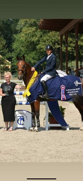 Lovely Lady is being offered directly by the breeder. Her mother was successful up to 1.45 meters, and Lady is definitely poised to follow in her footsteps. She has already demonstrated her quality in young horse competitions. In the finals of the Czech Championship for five-year-old show jumping horses, she took first place. At six years old, she gained experience in classes up to 1.30 meters and has placements up to 1.20 meters. She is very careful over jumps, possesses a lot of strength, and has a positive approach to jumping. Additionally, she has an excellent temperament, enjoys hacking out with her owner, and is mainly ridden dressage-wise by her. The X-rays are very good; the mare is healthy and free of vices. We have several other interesting horses listed in our other ads. If you are looking for something different, please feel free to contact us. Want to see proof of our professionalism? Visit our Facebook page, where you can also find reviews from our international clients.