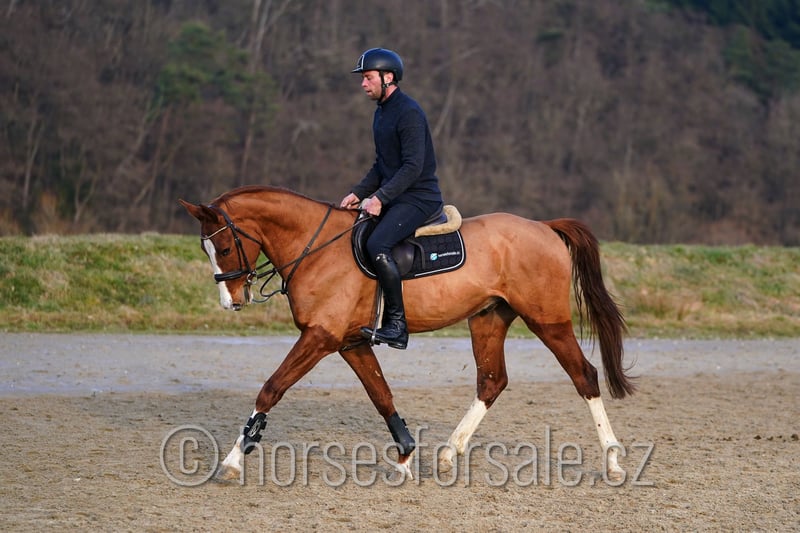 ALVIN - youngster for ambitious riders, show jumping/equitation, top pedigree Alvin is a very promising youngster with plenty of scope and excellent pedigree. He was started under saddle in the winter and is now ready for his show debut, can run a small course. Alvin has a nice brain, is motivated, ready to learn, and shows really a great jump and a lot of quality. He would suit for an adult amateur, but also for an ambitious professional rider. His father was successful up to GP level, his mother is currently doing 130/135 classes. Price: 29.000 €, More information or videos under +420602862723 https://youtu.be/u91oWvPbjd0 https://youtu.be/KUQ4yLXYfzA Born: 2022, Height: 168 cm, Pedigree: Aristo z x Untouchable Location: 1,5 hour from Prague, Czech republic, Central Europe. *** more horses on my website www.horsesforsale.cz ***