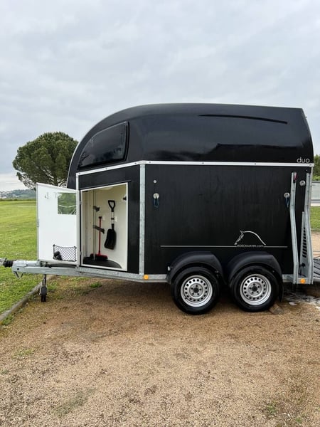 Capacité: 2 Chevaux Poid a vide 670 kilogrammes PTAC: 2000 Kilogrammes Chevaux voyagent: Tête avant Plancher aluminium Toit en polyster