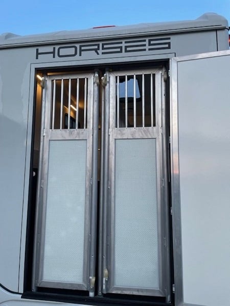 Remorque pour chevaux d'occasion, version étalon avec espace de vie Modèle 2024 Un précédent propriétaire Contrôle technique valable jusqu'en novembre 2027 Poids total admissible : 3,5 tonnes Équipement : 2 places en version étalon et logement entièrement équipé Châssis galvanisé Poids total admissible : 3 500 kg ; poids à vide : 1 949 kg Soubassement en profils Snaplock en aluminium avec tapis de sol en caoutchouc spécial collé ; Panneaux latéraux et de toit entièrement isolés d'une épaisseur de 30 mm, Design aérodynamique à l'avant Porte d'entrée verrouillable à droite avec marche escamotable Rampe latérale avec ventilation au-dessus 2 fenêtres d'abreuvoir à la tête des chevaux 1 fenêtre coulissante longitudinale en face ; 1 grande lucarne au plafond Une cloison pour étalon avec bardage transparent Une protection buccale complète Plancher en planche à la rampe 2 portes intérieures grillagées à l'arrière, chaque cheval accessible séparément Une grande porte extérieure à l'arrière Espace de vie avec douche, 2 sièges et table convertible en lit superposé, kitchenette avec évier, micro-ondes et réfrigérateur, nombreux rangements. Roue de secours montée Disponible immédiatement Visite uniquement sur rendez-vous Prix : 25 900 € brut, net non déductible de TVA Nous avons constamment de nouvelles remorques en stock, immédiatement disponibles Demandes au 01606106131 ou 00491606106131