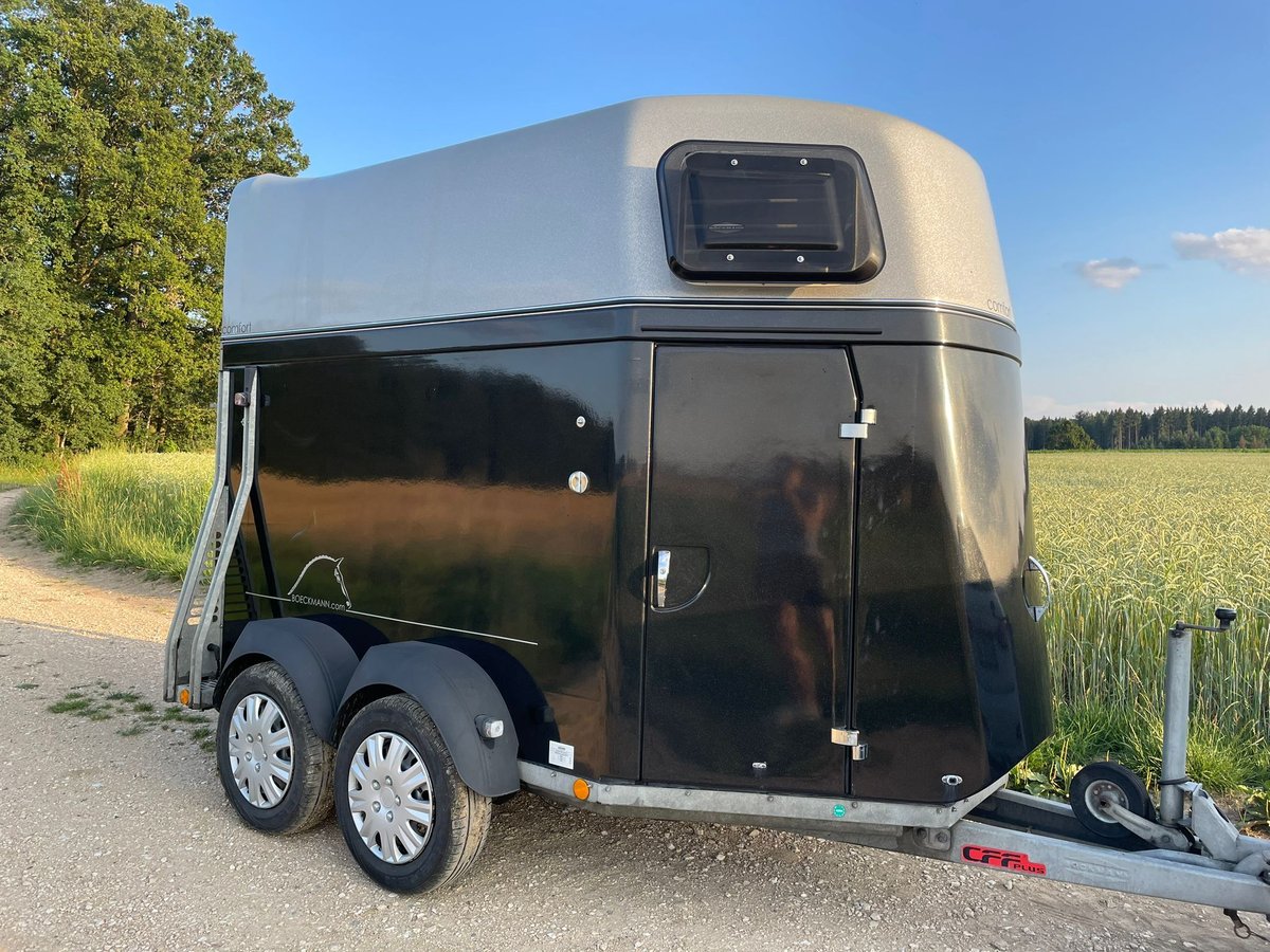 Verkaufe meinen Böckmann Pferdeanhänger Comfort aus dem Baujahr 2009. Der Hänger bietet folgende Ausstattung: • Geräumige Sattelkammer für deine Ausrüstung • Stabile Konstruktion von Böckmann • Doppelachse für sicheren Transport • Große Fenster für gute Belüftung • Praktische Seitentür Der TÜV ist frisch erneuert, sodass du direkt losfahren kannst. Der Hänger ist in einem guten Zustand und war bis 2025 immer trocken abgestellt. Bei Fragen melde dich gerne.