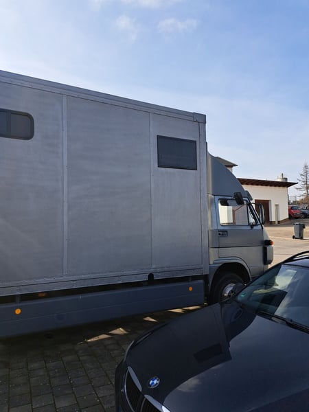 Witam, sprzedaję mój samochód transportujący konie z rocznika 1990. Uważam, że jest idealny na dwa duże konie lub trzy mniejsze. Przebudowa na trzy boksy jest bardzo prosta, wykonana z aluminium. Przyczepa, wraz z podłogą, została całkowicie odnowiona w zeszłym roku za dużą sumę pieniędzy! Pojazd dzięki tablicy H jest bardzo tani w utrzymaniu i nie płaci się opłat drogowych, można nim jeździć wszędzie. W zeszłym roku został złożony wniosek o tablicę H, co wymagało pełnego przeglądu technicznego w TÜV, co nie było problemem. Oprócz części przeznaczonej dla koni, samochód ma część mieszkalną z WC, prysznicem, umywalką, składanym łóżkiem, lodówką, 80-litrowym zbiornikiem na wodę pitną oraz dwoma kuchenkami. Zestaw do siedzenia można również przekształcić w łóżko. W części dla koni zamontowano klimatyzację i wentylator. Dodatkowe wyposażenie: - kamera cofania - kamera w części dla koni - zewnętrzny zbiornik na wodę 60 l Sprzedaję ten samochód tylko dlatego, że sprzedałem konie. Zbudowałem go, ponieważ jedna klacz była za duża na standardowe przyczepy. Samochód był idealny dla dwóch dużych koni, zapewniając dużo przestrzeni i komfort, zwłaszcza gdy podróżuje się samemu lub startuje się z dwoma koniami w tej samej konkurencji – to bardzo wygodne. Część mieszkalna spełnia swoje zadanie, oferując wszystko, co potrzebne do nocowania – 2-3 miejsca do spania. Można go łatwo przekształcić na transportowiec lub samochód imprezowy. W razie pytań proszę o kontakt: 01746875007