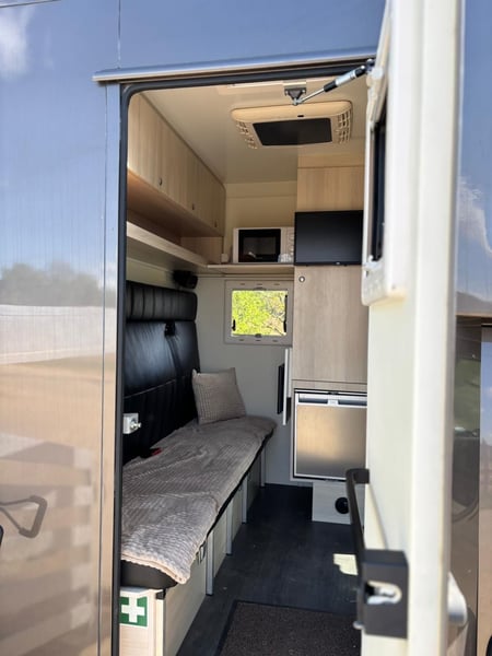 Pferde LKW / Pferdetransporter mit Wohnmobilzulassung ||keine Maut|| 110 kmh || TÜV neu Zum Verkauf steht ein gepflegter Pferde LKW mit sinnvoller Ausstattung für Transport und Aufenthalt. Wichtiger Vorteil: Wohnmobilzulassung daher keine Mautpflicht und zulässige Geschwindigkeit bis 110 kmh Fahrzeugdaten: Erstzulassung 01.03.2019 Kilometerstand ca. 40.000 km Leistung ca. 180 PS 132 kW Hubraum 4.192 cm³ Gesamtgewicht 7.000 kg Kraftstoff Diesel Getriebe Schaltgetriebe Hersteller Iveco Pferdebereich: Große Rampe mit seitlicher Absturzsicherung Dachlüfter sowie Dachfenster und Seitenfenster Beleuchtung im Pferdeabteil Pferdekamera Halterungen für Futtereimer Halterung für Gabel und Besen Sattelkammer: Waschbecken 100 Liter Wassertank mit Schlauch Sattelschrank mit Sattel und Trensenhaltern Herausziehbare Fächer Wohnkabine: Sitzbereich mit ausziehbarem Tisch Kühlschrank Mikrowelle Induktionskochplatte 2 Schlafplätze Standheizung Seitenfenster Fahrkomfort und Technik: Tempomat Klimaanlage Rückfahrkamera Anhängerkupplung Zustand: Guter allgemeiner Zustand mit üblichen Gebrauchsspuren. Bei Fragen gerne melden 01601844150