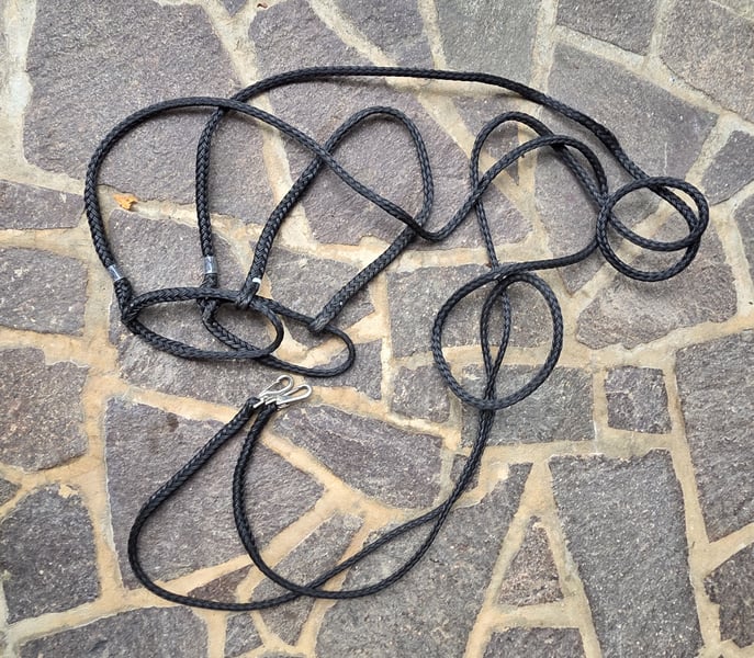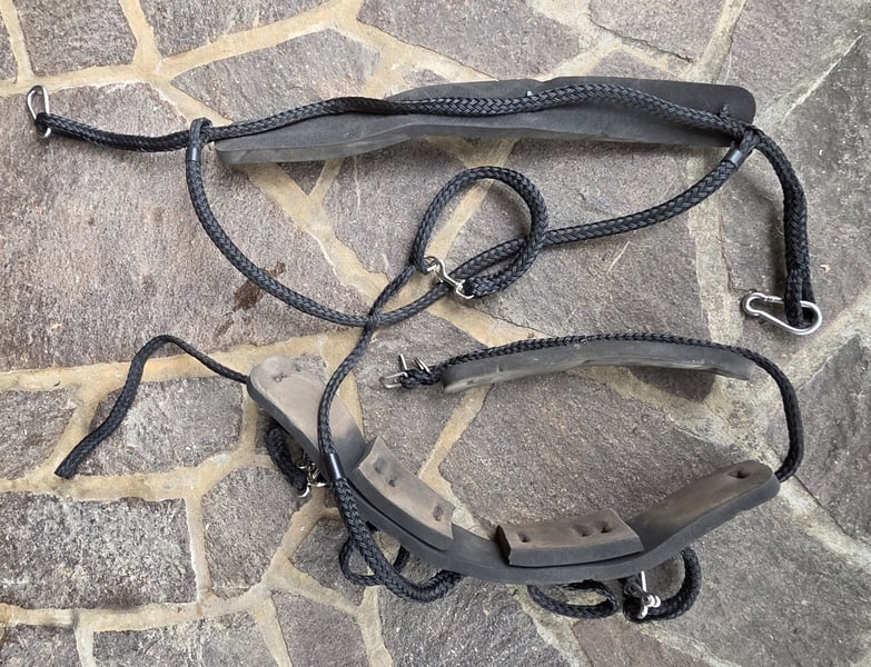 Sieltec Pur Einspännergeschirr in Größe 2 schwarz mit zusätzlichem Zubehör: - Standard-Pur Brustblattgeschirr mit zusätzlichem Halsriemenpolster - Selett mit einseitiger Schnallung mit zusätzlichem Bauchgurtpolster - Hintergeschirr für Pony mit Polster für Hintergeschirr als Zusatzteil - Längenverstellbarer Sieltec-Fahrleine mit Doppelendschlaufen (Griffe) für Pony - Zusatz: Schnellverschlüsse mit Schläkel an den Zugsträngen für eine verbesserte Sicherheit, um die Zugstränge schnell von der Kutsche lösen zu können - Zusatz: Die Schnallen an den Trageösen wurden durch Karabiner mit Schraubschläkel ersetzt, um die Trageösen im Notfall schneller öffnen zu können Für eine verbesserte Wirbelsäulenfreiheit wurde bei dem Selett das untere Polster im Bereich der Wirbelsäule ausgeschnitten. Dies kann aber bei Bedarf durch ein neues Polster ersetzt werden. Privatverkauf, keine Garantie oder Rücknahme.