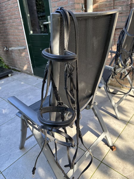 3 hoofdstellen maat cob 1 x bruin 2 x zwart 2 hoofdstellen inclusief bit, zie foto’s