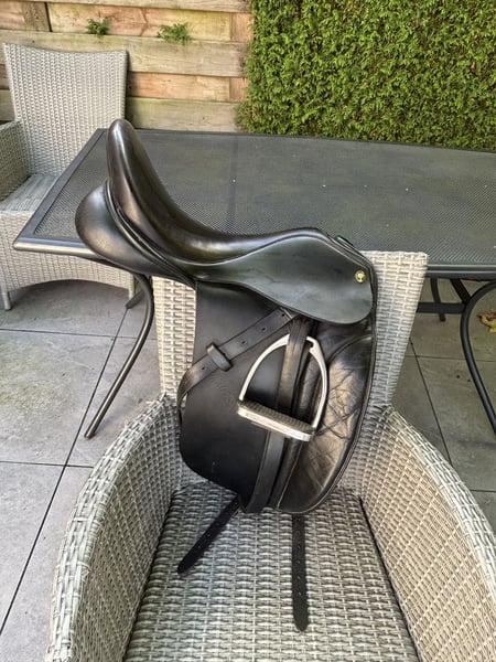 Net Ainsley dressuurzadel 17,5 inch Medium boom Het zadel is in goede staat