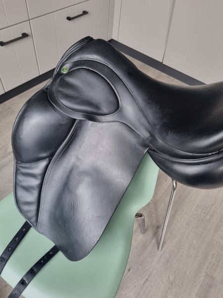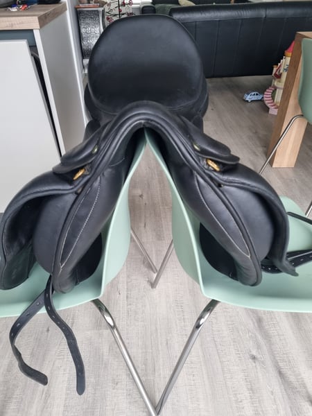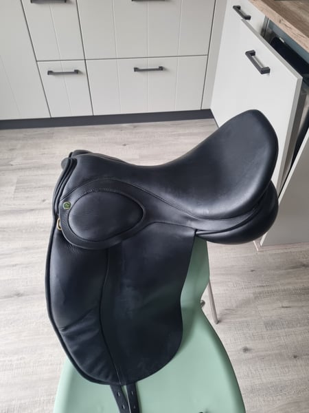 Nog een prima zadel met wel een lichte beschadiging zie foto. Mooie achterkant. Ik verkoop deze omdat hij niet meer goed op mijn paard ligt. Hij is nu maximaal gevuld. Hulsebos 18 inch Medium wide impuls Gemaakt: 02-09-2019. Bij vragen neem contact op.
