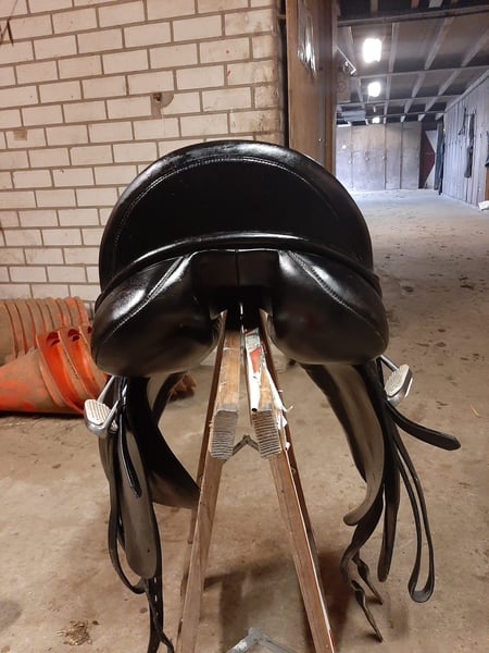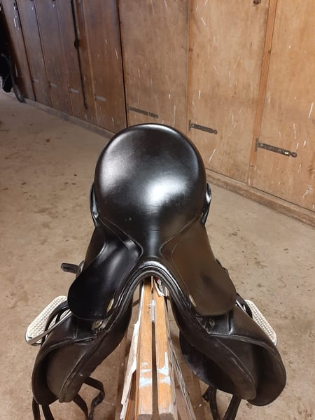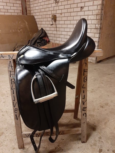 Kentaur Penelopa dressuurzadel 18 inch Fit 3 Dit zadel is gebruikt, wat terug te zien is in de normale uiterlijke sporen, maar het is technisch nog in topconditie. Geen scheuren, geen kapotte onderdelen en de boom is uiteraard onbeschadigd. Een zadel dat nog jaren mee kan. Altijd in zadelhoes opgeslagen geweest.