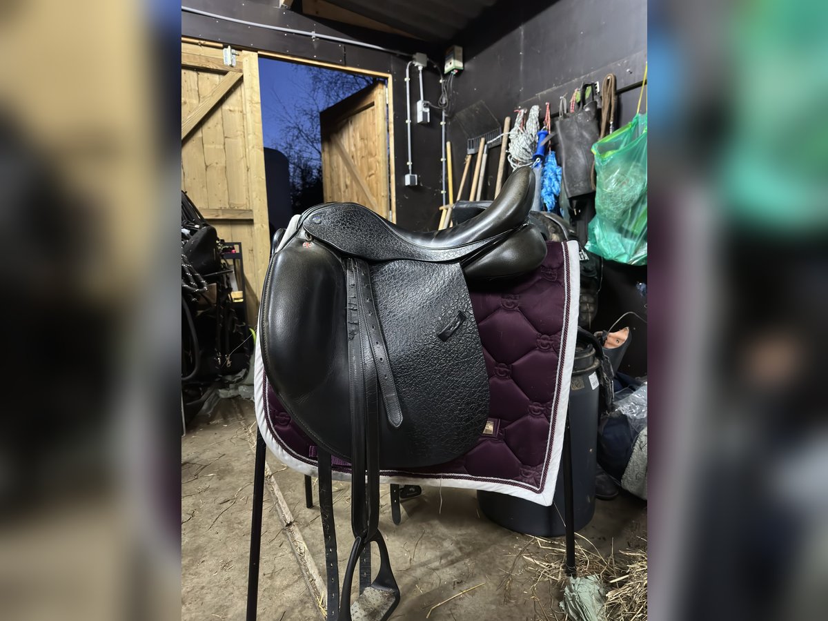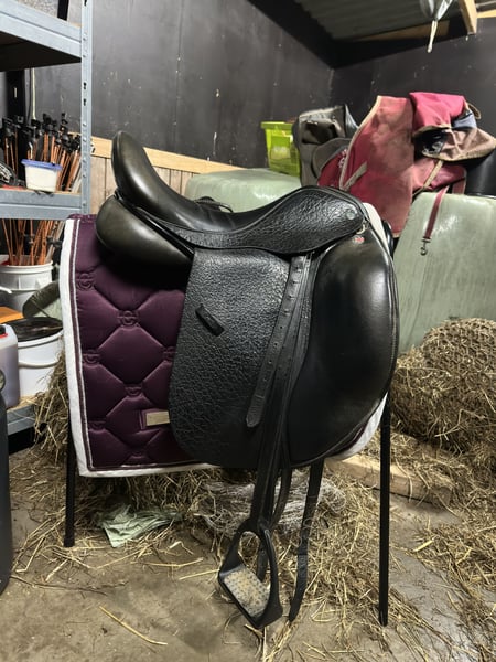 KM Olympic Dressuurzadel 17,5” M/W Met een beetje pijn in het hart verkoop ik mijn fijne KM Olympic dressuurzadel. • 17,5 inch • M/W boom • Comfortabele en stabiele zit • Netjes onderhouden Het zadel heeft normale gebruikssporen passend bij de leeftijd, maar is altijd goed verzorgd. Het leer is soepel en het zadel ligt stabiel. Zadel is nog nagekeken ! De boom is ook gecontroleerd: – Voelt stevig aan – Geen speling – Geen krakende of klikkende geluiden De kussens zijn gelijkmatig gevuld en voorzien van wolvulling. Hierdoor kan het zadel goed aangepast worden aan de vorm van het paard door een zadelmaker. Door de bouw van het zadel is het ideaal voor paarden met wat bredere schouders. Dankzij de terugliggende zweetbladen krijgen de schouders voldoende vrijheid tijdens de beweging. Singelstoten zijn netjes en in goede staat. Bezichtiging en passen mag uiteraard in overleg. ⸻ Praktisch! Dit betreft een particuliere verkoop. Het zadel wordt verkocht in de staat zoals wordt beschreven en getoond. Geen garantie of retour mogelijk. Verzending is mogelijk, zorgvuldig verpakt en verzekerd. Kosten en risico van verzending zijn voor koper.