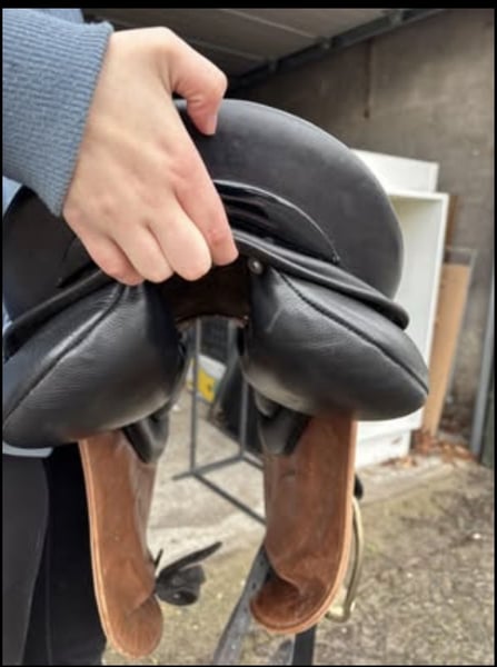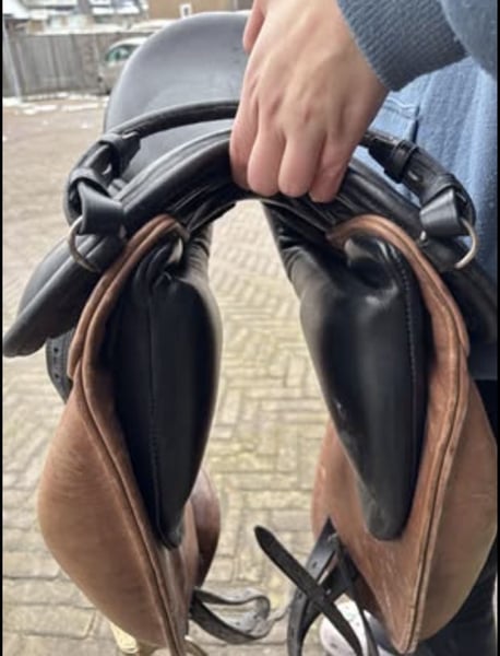Hierbij bied ik mijn zadel aan Raisin semi curved seat fit 2. 18 inch dressage fixed Block flappen DWG Kussens fit 2 Met beugels en zadelhoes