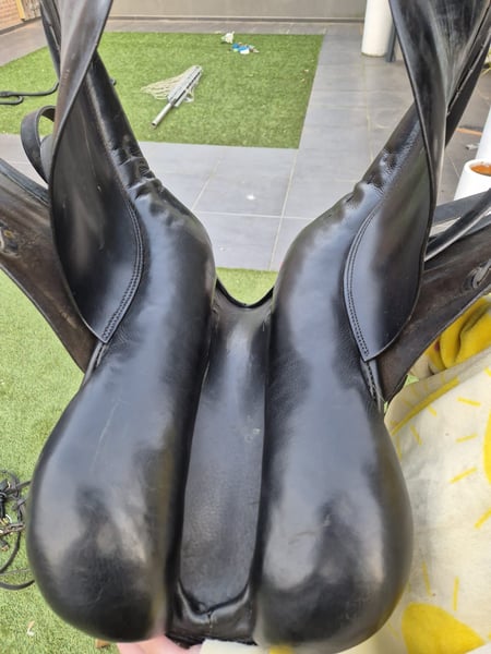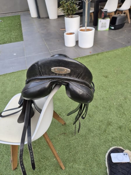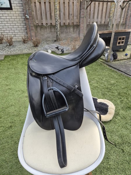 Nog als nieuw Mooi dressuur zadel Heel goed onderhouden 17.5 inch zit maat Medium boommaat Lang niet gebruikt
