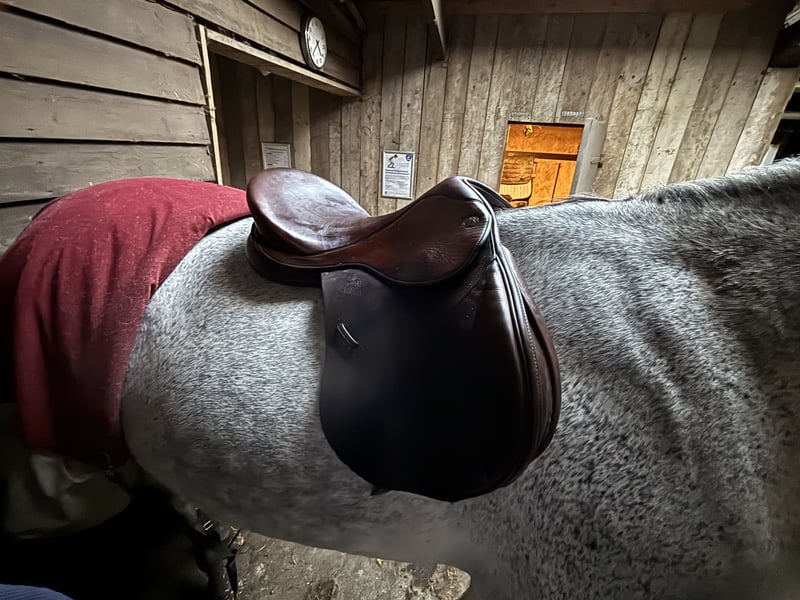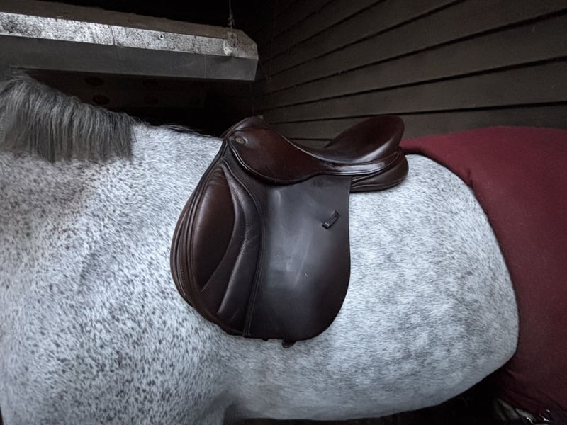 Fairfax classic gp zadel Veelzijdigheidszadel van fairfax. Heeft bij mij op drie totaal verschillende maat paarden gelegen, is dus een erg makkelijk aanpasbaar zadel. https://www.fairfaxsaddles.com/products/fairfax-classic-gp-saddle Colour: Havana Leather/Trim: Full grain English hide & butt leather Panel: Traditional wool flocked Seat Size: 17½" Gullet Bar Type: R-Bar A luxurious GP with a supportive seat which means even long hours in the saddle are comfortable and pleasurable. * Stitched-on knee roll provides superior support for the leg * Deep cushioning over the knee rolls ensures the support is softer and more accommodating for a variety of leg lengths - particularly useful for those who intend to ride with different stirrup lengths (i.e. hacking or jumping) * Two rows of ghost stitching on the knee pad allow it to contour easily around the block, allowing the leg to rest in the most comfortable and effective position * Super-soft full grain hide on the seat and knee pad