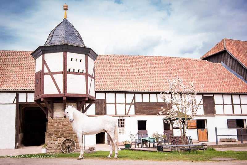 A weekend to get to know the breed, immersing yourself in a completely different riding experience with fine aids and an intense communication with the horse of emperors and kings. In a theoretical introduction to the specifics of the breed, we will answer all your questions about these unique horses. During our stud tour, we will show you the stallions, mares with foals, young horses, and school horses from Gut Drebsdorf. In the initial meeting with grooming, saddling, and bridling, you will already be captivated by the people-oriented character of our school horses. In the first riding session, we will conduct a seat analysis, as Spanish horses are ridden from the body. You will notice: it feels like sitting on clouds! In the second session, you will experience the lightness of the aids, and in the last hour, we may already work on the first lateral movements, depending on your prior knowledge. Services: 2x overnight stays in the holiday apartment 1x seat analysis 2x riding lessons focused on the Spanish horse with a theoretical component 1x stud tour and lecture on the Spanish horse Optional - for interested parties only: Neutral purchase advice with information on buying abroad/Germany/transport, purchase examinations, specifics of care/feed, which type of horse suits me. Price 65,- EUR Price for one person 419,- EUR, accompanying person without riding pays only 45,- EUR. Price for two persons with riding per person 314,- EUR. Not bookable on/around holidays. Extendable at any time subject to availability!