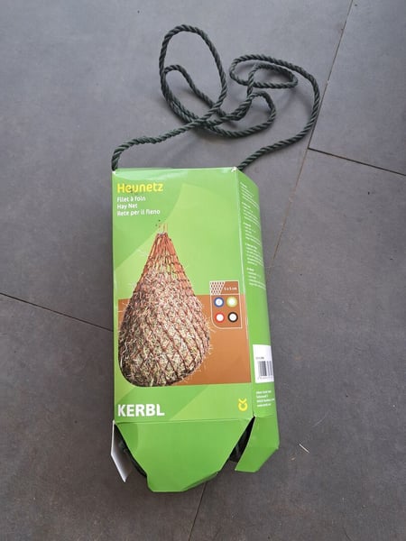 Das heunetz ist grün und die Maschen Größe vom heunetz sind 5×5cm groß