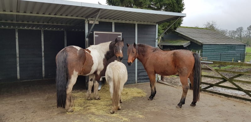 Nieuwe tijdgestuurde hooiwagen met 4 voerbakken – de voerrooster biedt ruimte voor tot 12 kg hooi.