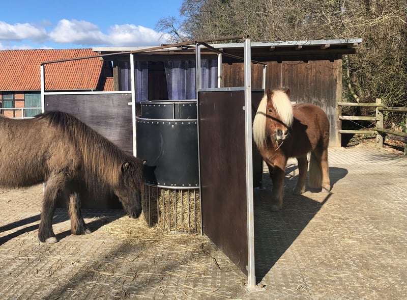 Tijdgestuurde voederbak voor paarden, de Powerraufe, geschikt voor tot 30 kg hooi, optioneel met wat