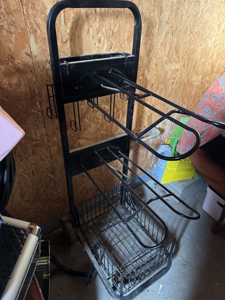 Verkaufe Sattelwagen in sehr guten Zustand. Er hat zwei Sattelablagen, Haken für Trensen und weiteres Zubehör sowie einen Korb. Zusammengebaut. Abholung bei Pöttmes