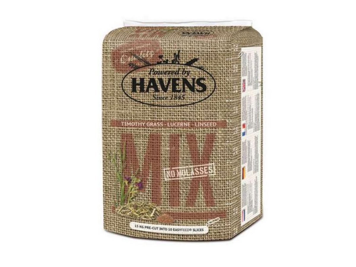 Havens Mix Havens Mix ist ein hervorragender Raufutter-Ergänzer, der reich an Proteinen und Aminosäuren aus der Luzerne mit seinem hohen Rohfasergehalt für eine reibungslose Verdauung bei gleichzeitiger Förderung der Muskulatur und Vitalität sorgt. Eigenschaften Raufutter mit Wiesenlieschgras mit Luzerne (Alfalfa) mit Leinsamenöl: reich an Omega-Fettsäuren ohne Zuckerzusatz melassefrei getreidefrei staubfrei rohfaserreich reich an Proteinen und Aminosäuren mit einem optimalen Calcium-Phosphorverhältniss von 2:1 reich an Rohfaser aus dem Wiesenlieschgras sorgt für Kautätigkeit und ausreichend Einspeichelung des Futters Besonders geeignet: für Pferde in leichter bis mittlerer Arbeit für Sportpferde mit Getreideallergie für Pferde mit Stoffwechselproblemen für unterwegs auf Turnieren Verpackung:15 kg