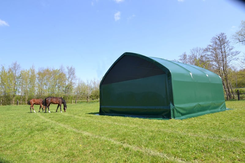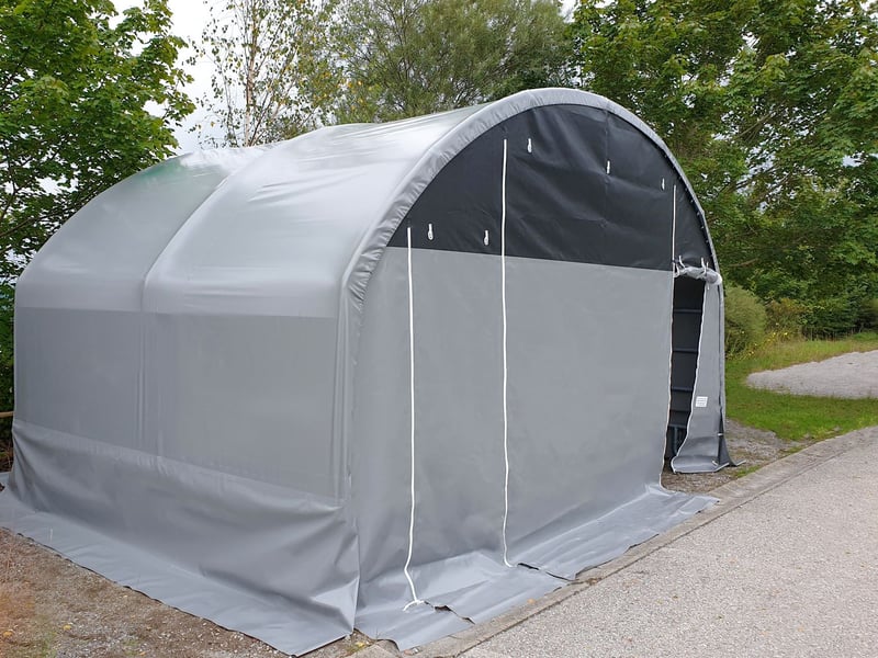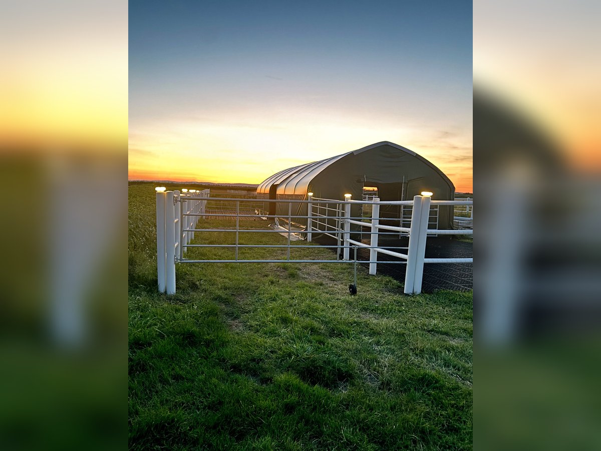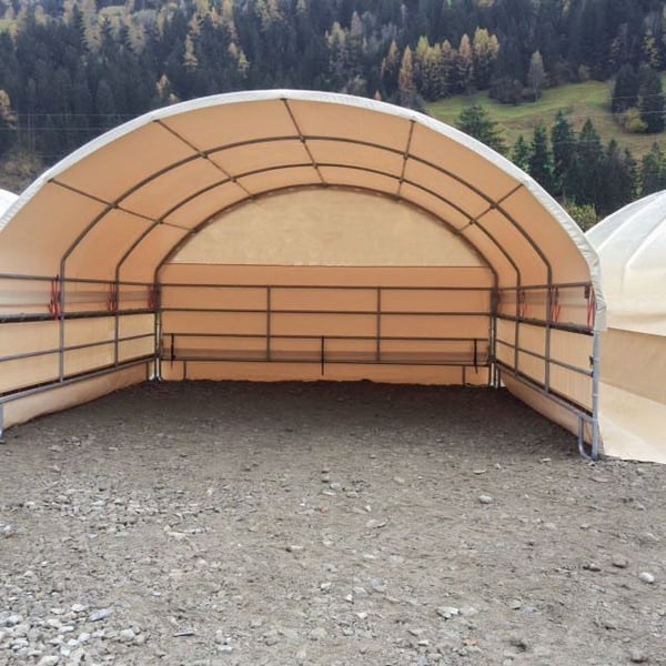 ✓ Garantierte Qualität mit Garantie ✭ ️Wetterfest & unerschütterlich ❆ Ganzjährig einsetzbar ▸ schnell aufgebaut Unsere Edelross️ Zelte sind statisch geprüft, garantieren höchste Qualität und Langlebigkeit. Auf die Planen dürfen wir Ihnen daher eine Garantie von 10 Jahren gewähren. Was macht unsere Zelte so einzigartig? → Wie gemauert: Rohre aus verzinktem Stahl mit einer Wandstärke von 3,25mm das stärkste auf dem Markt → Geprüfte Qualität aus Europa: statisch geprüfte Bauweise → Ideal für Pferde: seitliche höher, Stangenabstand größer → verhindert Hängenbleiben → Extrem belastbar: Plane mit hoher Reißfestigkeit und langer Lebensdauer → Ganzjährige Witterungsbeständigkeit: zertifizierte PVC-Außenhülle für einzigartige Temperaturresistenz → Dauerhaft oder mobil: hohe Flexibilität durch einfachen Auf- und Abbau → Ersatzteile: alle Ersatzteile können kurzfristig geliefert werden → Vielseitig einsetzbar: Offenstall, Koppel, Tierunterstand, Lagerzelt, Heulager → Auf/Abbau: mit zwei Personen in kürzester Zeit → Inkl. Sturmsicherung: Standard auf Boden oder Beton → To Go: kann mit Radlader, Frontlader oder mit Handkraft verschoben werden → Ausstellerzelt: Besichtigung in 2232 Deutsch-Wagram möglich → verschiedene Varianten: Mit Dach,- Seitenverkleidung (auch aufrollbar) mit Rückwandpanel oder ohne. → Planenfarben: moosgrün, lichtgrau, achatgrau, elfenbei und weiß → Verfügbare Zeltgrößen: 4x4, 4x6 mit Rundbogen sowie 6x4, 6x6, 6x8, 6x10 und 6x12 mit Giebel. Edelross️ Weidezelte im Detail: ✭ Wie gemauert: In höchster Qualität gefertigt: Die Rohre aus verzinktem Stahl überzeugen mit einer Wandstärke von 3,25 mm. Die Dachbögen werden verzugfrei kaltgebogen, sodass das Metall seine Festigkeit behält und nicht spröde wird. Durch die statisch geprüfte Rundbogen-Bauweise ist die Standsicherheit und Belastbarkeit optimal. ✭️ Eine Plane für extreme Belastungen: Die hochfrequenzverschweißte Plane überzeugt nicht nur durch ihre Dicke, sondern auch durch ihre Flächenstabilität, die Verformungen verhindert. Die höhere Beschichtungsdicke sorgt für eine lange Lebensdauer und hohe Reißfestigkeit. Diese robuste Plane, wie sie auch bei LKWs verwendet wird, hält selbst extremen Belastungen stand. ✭ Ideal für Pferde: Die seitlichen Paneele sind 1,8 m hoch, was den Pferden viel Kopffreiheit bietet. Im Gegensatz zu herkömmlichen Weidepaneelen bieten unsere Paneele einen Abstand von 40 cm zwischen den Stangen, wodurch ein Hängenbleiben der Pferde effektiv verhindert wird. ️️✭ Ganzjährige Witterungsbeständigkeit: Mit einer zertifizierten PVC-Außenhülle bieten unsere Weidezelte eine einzigartige Temperaturresistenz. Egal ob heiße Sonnenstrahlen oder kalte Winternächte - das Material behält seine Integrität und Funktionalität. ✭ Schneller Aufbau: Das Design der Zelte ermöglicht eine einfache Montage und Demontage. Der Aufbau des Rundbogenzeltes kann von zwei Personen in nur 2-3 Stunden mühelos abgeschlossen werden. ✭ Vielfältig und mobil: Egal ob für die mobile Nutzung oder dauerhafte Einrichtung auf Koppel, Weide oder Hof - unsere Rundbogenzelte sind die ideale Wahl im Freien. Der Unterstand bietet eine hohe Flexibilität bei der Platzierung; er lässt sich flexibel mit einem Radlader, Frontlader oder auch von Hand verschieben. Zu groß? Zu klein? Individuelle Anpassungen? Wir haben haben in unserem Sortiment unterschiedliche Konfigurationen und Größen. Preise schon ab 2.416,67 € zzgl. Mwst (2.900€) inkl. Statik und Standard Bodenbefestigung. ☏ Wir beraten Euch gerne. EDELROSS️ Rundbogenzelt, Weidezelt, Weideunterstand, Unterstand, Pferdeunterstand, Lagerzelt, Garagenzelt, Pferdestall, Schafstall, Garage für Auto, Geräteunterstand, Maschinenhalle Frei-Haus-Lieferung nach Österreich oder Deutschland möglich Bei der Bestellung wird versichert, dass ein LKW jeder Größe anliefern kann. Sollte das nicht möglich sein bitten wir um vorherige Kontaktaufnahme. Für die Entladung steht geeignetes Gerät wie Stapler oder Traktor bzw. Ähnliches mit Staplergabeln bereit. Alternativ kann das Zelt auch mit zwei Personen in Einzelteilen entladen werden. Versandkosten und genaue Preise siehe Onlineshop.
