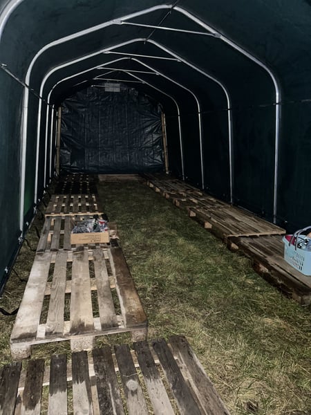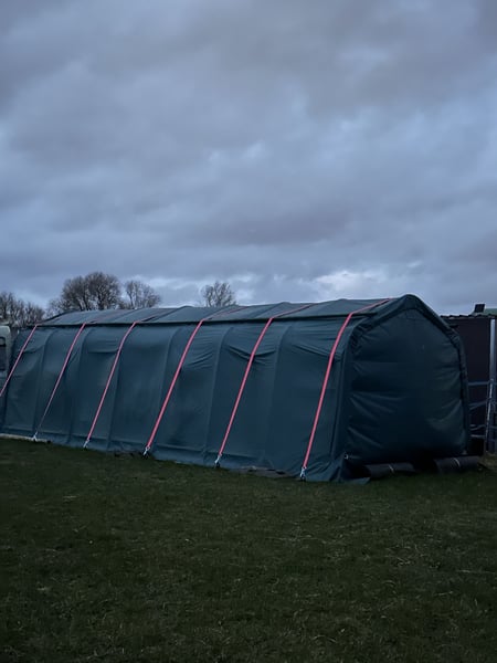 Weidezelt/Heuzelt/Carport zu verkaufen Gekauft: November 2024, Rechnung vorhanden (Garantie läuft noch 2 Jahre) Größe: Länge 8,4 Meter x Breite 3,3 Meter x Höhe 2,35 Meter, Gesamtgewicht: 193,33kg, robuste Planenstärke PVC 800 mit dickem Rasterinnengewebe, 100% Wasserdicht durch verschweißte Nähte, extra starke Rohrprofile aus vollverzinktem Stahl, für den ganzjährigen Einsatz geeignet, mit Statik Erduntergrund Neupreis 950 Euro (eigentlich 1.069 €) Ersatzplane 8,4 Meter und die hintere Tür (beim Kauf nicht enthalten) ist im Preis mit inbegriffen Würth Spanngurte (rot) 6 Stück unten geschlossen, können für 115 Euro dazu erworben werden (selbst gekauft) Für die optimale Druckverteilung auf der Plane, sind unter den Spanngurten oben Holzlatten befestigt (auch selbst gekauft) diese sind im Preis mit inbegriffen ❗️Die Eisenanker außen, sind beim Kauf NICHT enthalten, genauso wie die Holzpfosten innen in den Ecken❗️(selbst gekauft) Über die Paletten kann man sprechen, da wissen wir noch nicht sicher, ob wir sie noch benötigen Abgebaut werden sollte bis zum 01.11. Dabei würden wir wenn es zeitlich passt, selbstverständlich helfen. ❗️Die Plane ist sehr schwer, ebenso wie das Gestell nicht gerade leicht ist.❗️Alleine kann man es nicht abbauen. Wir haben es nur als Heuzelt genutzt. Wir hatten keine Probleme: bei 30 grad, bei Schnee oder Wind. Es hält mit der Sicherung bis jetzt bombenfest. Die vordere Tür ist einfach mit Reißverschluss zu öffnen, die hintere ist komplett geschlossen. Man kann die Türen aber auch, wenn man es als Weideunterstand nutzen möchte, komplett weg lassen. Wir hatten bis zu 125 HD Ballen Heu drin, zusätzlich noch einen Strohrundballen und Schubkarren. Bietet sehr viel Platz und die Plane ist auch von innen dunkel (sieht auf dem einen Foto heller aus als es ist) sodass das Heu dunkel gelagert werden kann und es nicht die Farbe verliert. Hat keine Mängel, natürlich ist die Plane von außen wegen der Witterung, nicht mehr so sauber als wenn man es neu kauft. Abholung in Postleitzahl 30926 Bei weiteren Fragen einfach schreiben. Privatverkauf, keine Rücknahme, keine Garantie
