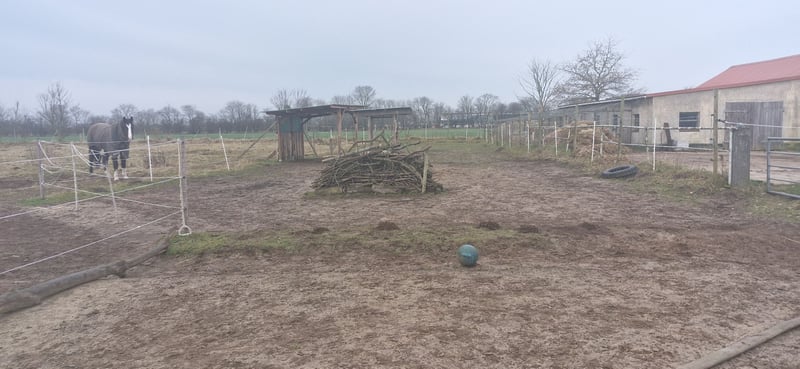 Wir suchen ein oder zwei weitere Ponies für unsere Paddock Herde. Bisher stehen hier 3 Stuten zusammen (9 /16 /27Jahre). Die Ponies bekommen 4 mal am tag rationiertes Heu und etwas Stroh. Im Sommer gibt es die Möglichkeit, dass die Ponies 1-2 stunden mit auf Gras können. Das Paddock umfasst 2 Heuraufen mit dach sowie 2 weitere Heu Stationen. Es sind 2 offenställe vorhanden. Das Paddock ist weitläufig angelegt, sodass die natürliche Bewegung angeregt wird. Die Kosten fürs Heu werden von uns als Einsteller selber getragen. Die Stalldienste würden wir uns zu 4 aufteilen, sodass jeder 2 mal die Woche dran wäre. Der zeitliche Aufwand beträgt maximal eine Stunde bis 1 1/2. Es ist meist möglich, flexibel Absprachen bezüglich der Stalldienstverteilung zu treffen. Eine Urlaubsvertretung ist nach Absprache auch möglich. Außerdem verfügt der Stall über: - Reitplatz - Futterküche -Notfallboxen - Putzplatz (drinnen & draußen) - Totholzecken im Paddock - Kratzmöglichkeiten - Ausreitmöglichkeiten/ Spaziermöglichkeiten - Eigene Trainer-/Hufschmied-/ Tierarztwahl (Anschluss an die Tierärzte etc. am Stall ist möglich!) - Es ist fast immer einer im Stall, sodass regelmäßig nach den Ponys geschaut wird - Extra Wünsche/ Bedürfnisse des Ponys werden bestmöglich versucht zu berücksichtigen - Kleine Stalldienstgemeinschaft - Wenig Pferdewechsel - Nur Selbstversorger! Bei weiteren Fragen oder ernsthaftes Interesse, melde dich gerne!